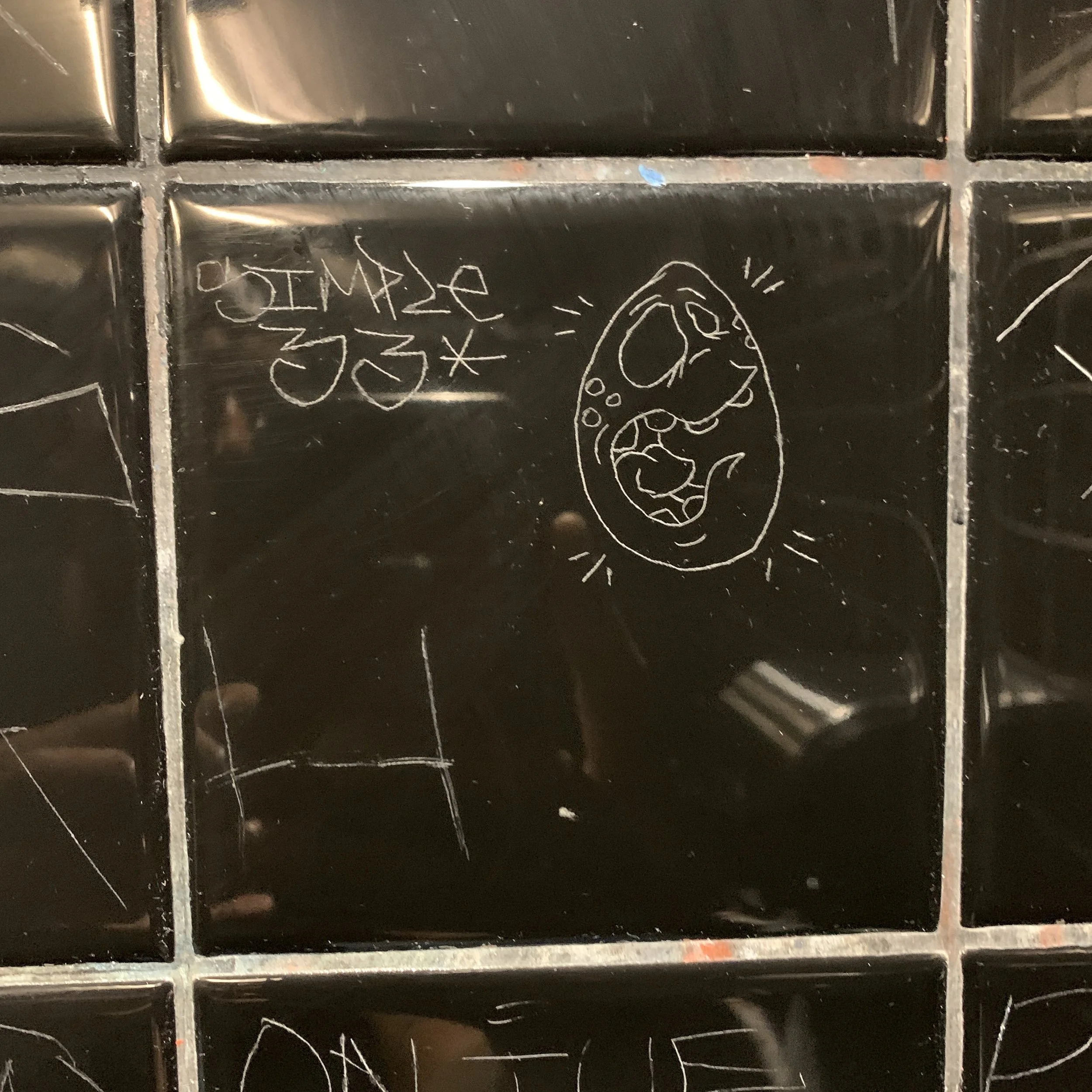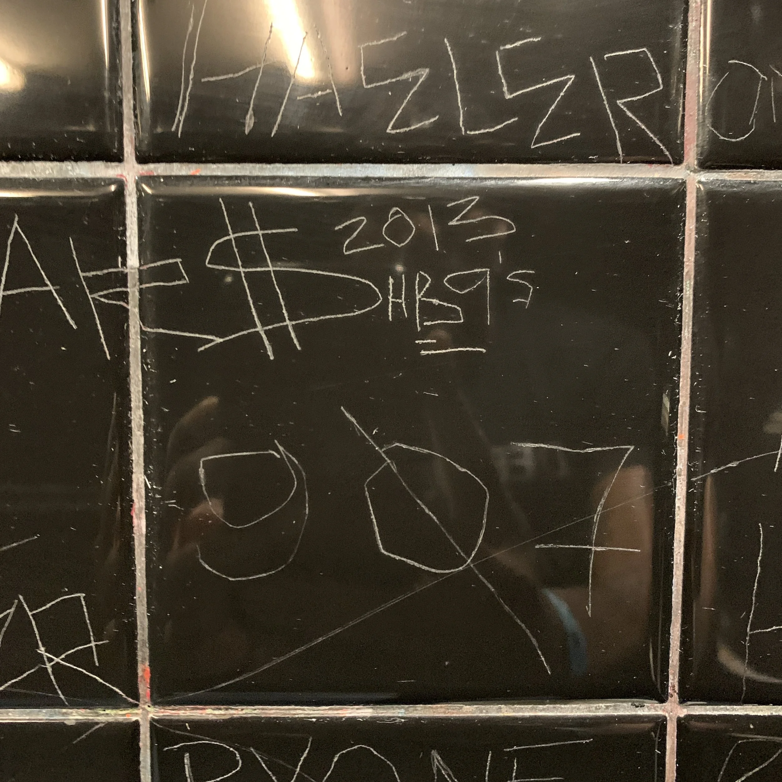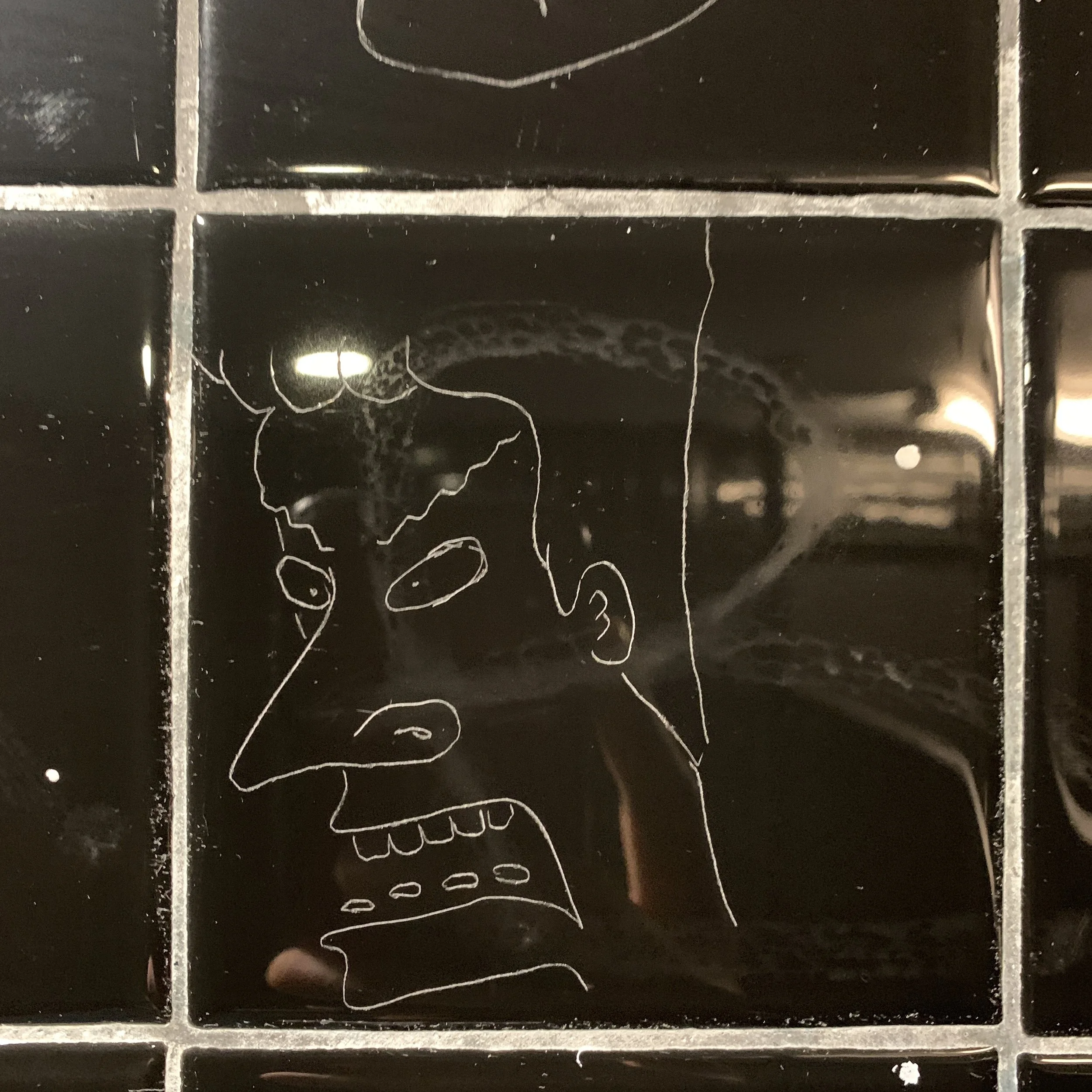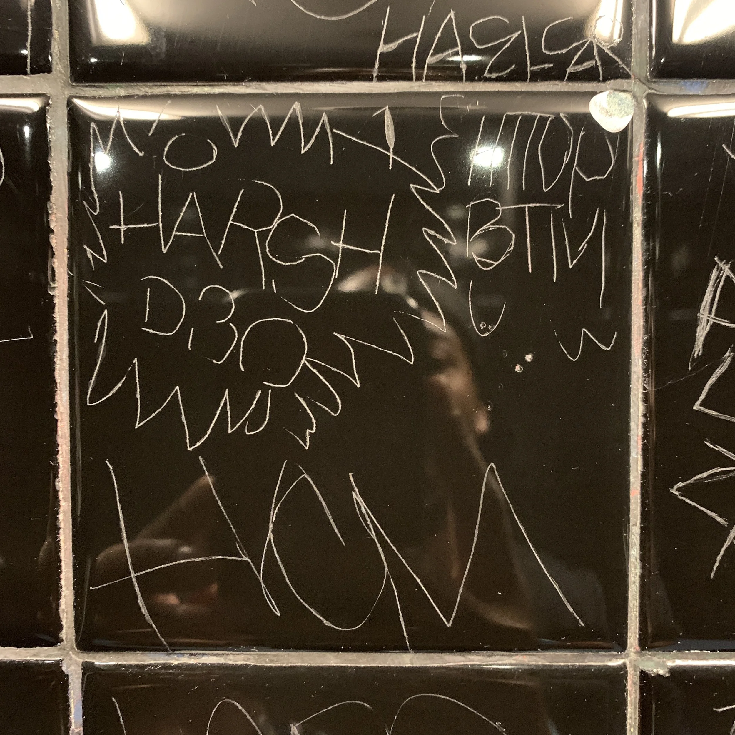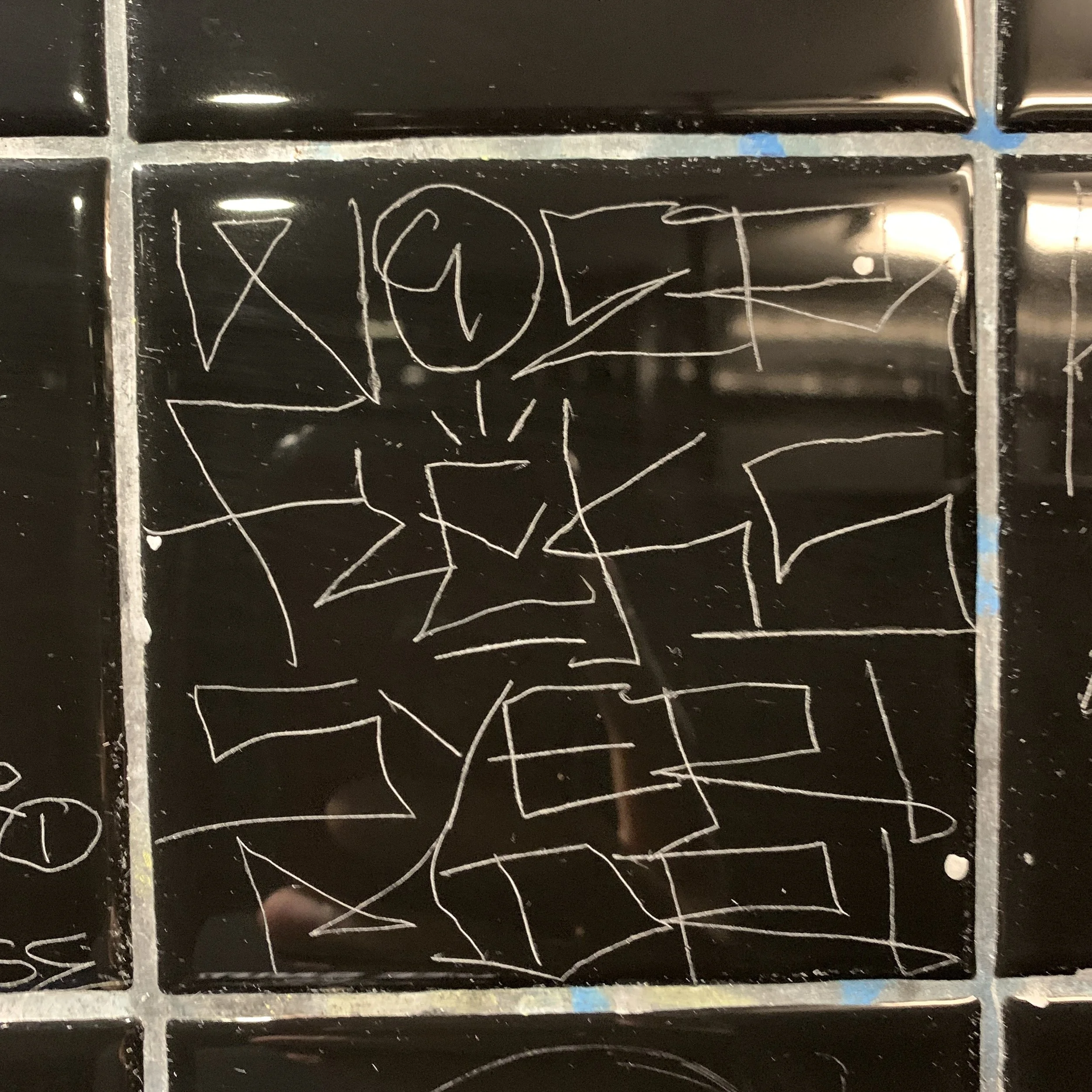 Black tile is the perfect canvas for public art. These were collected from the Garden Bowl in Detroit.