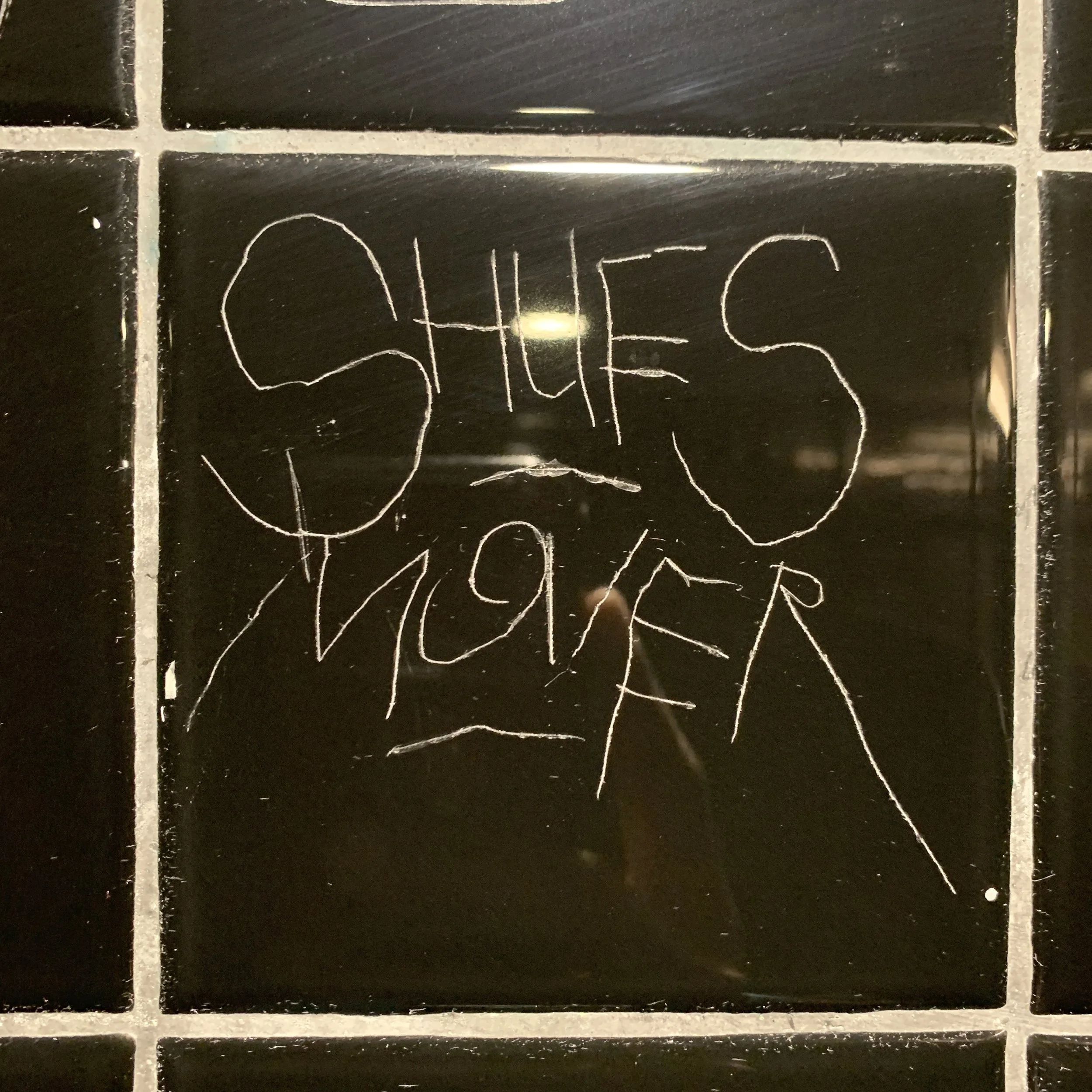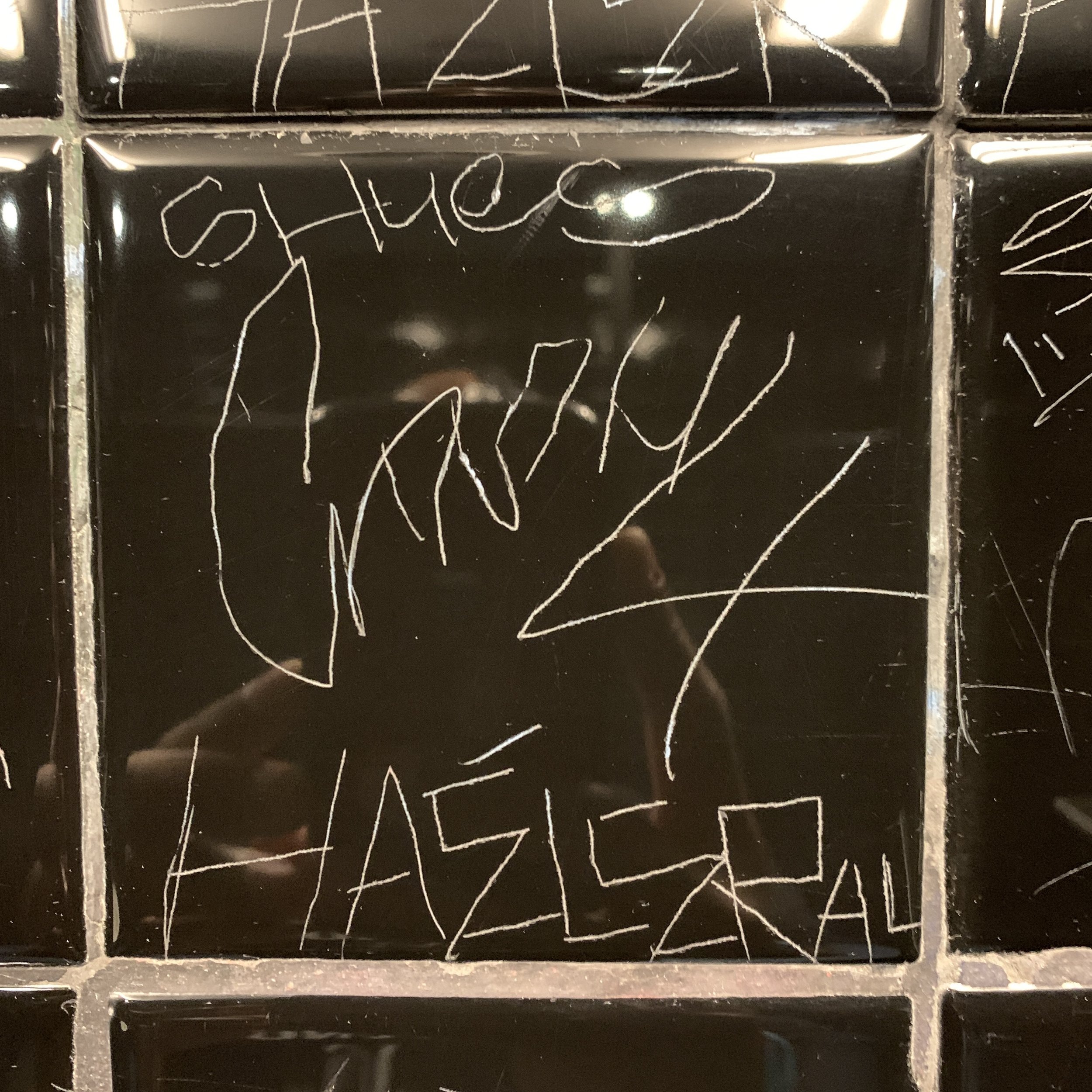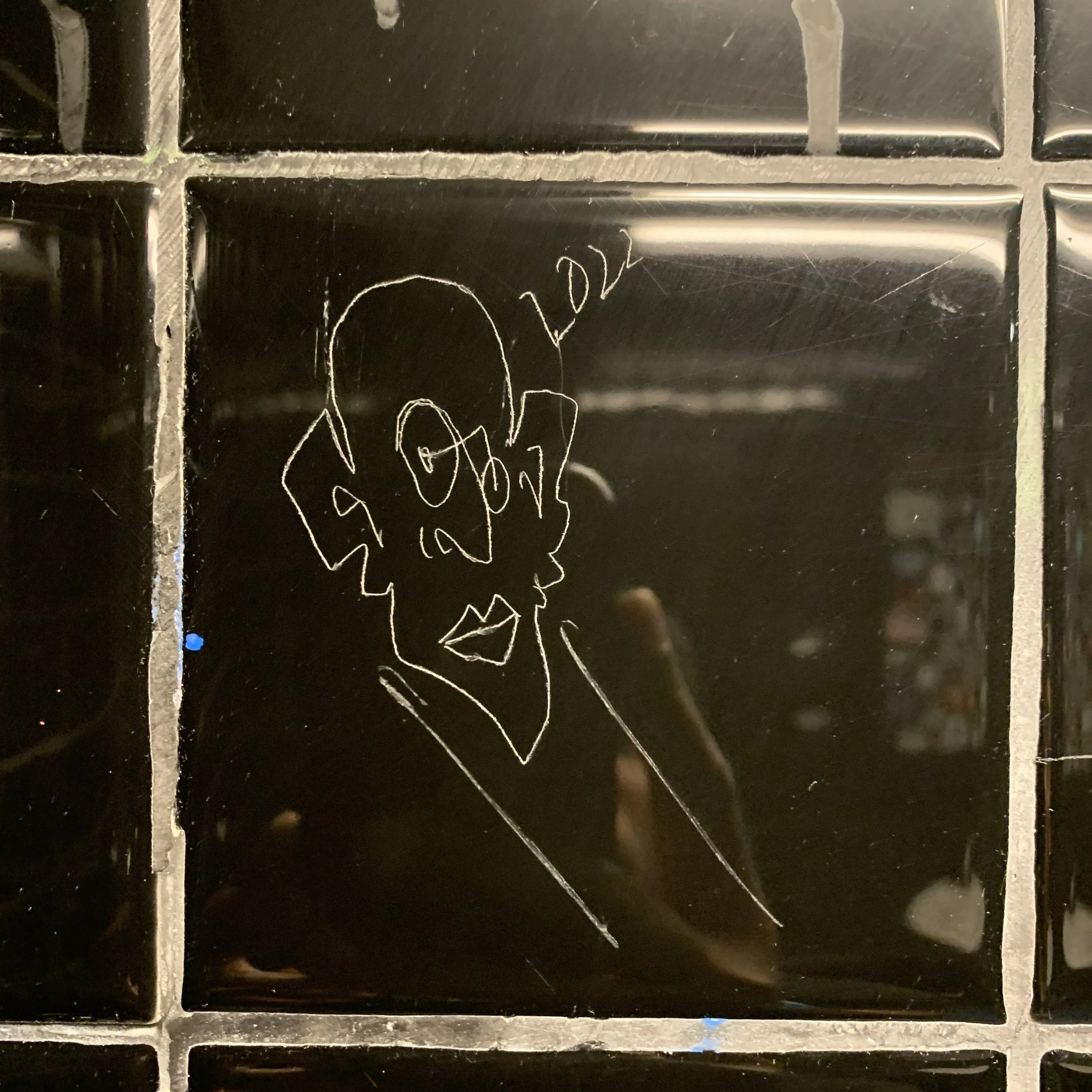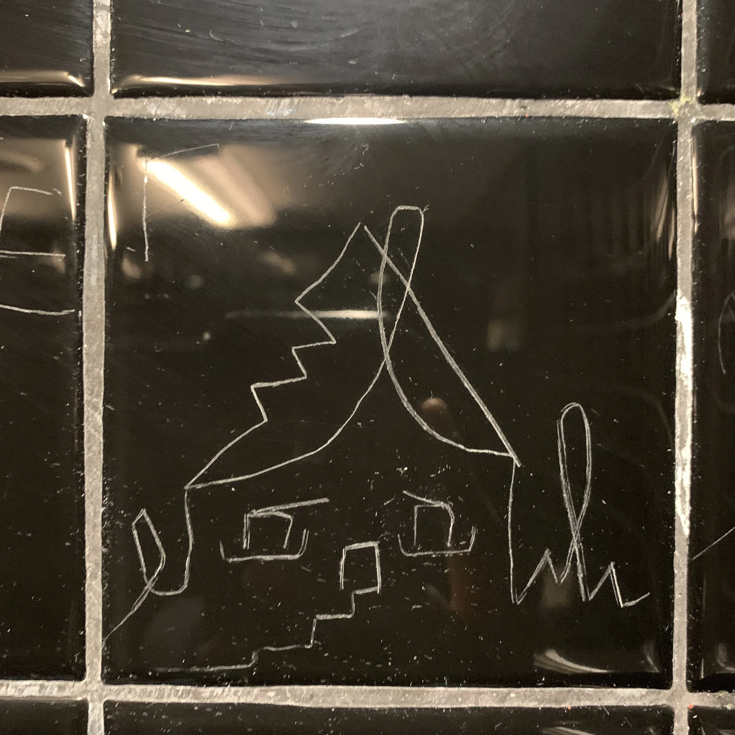 Black tile is the perfect canvas for public art. These were collected from the Garden Bowl in Detroit.