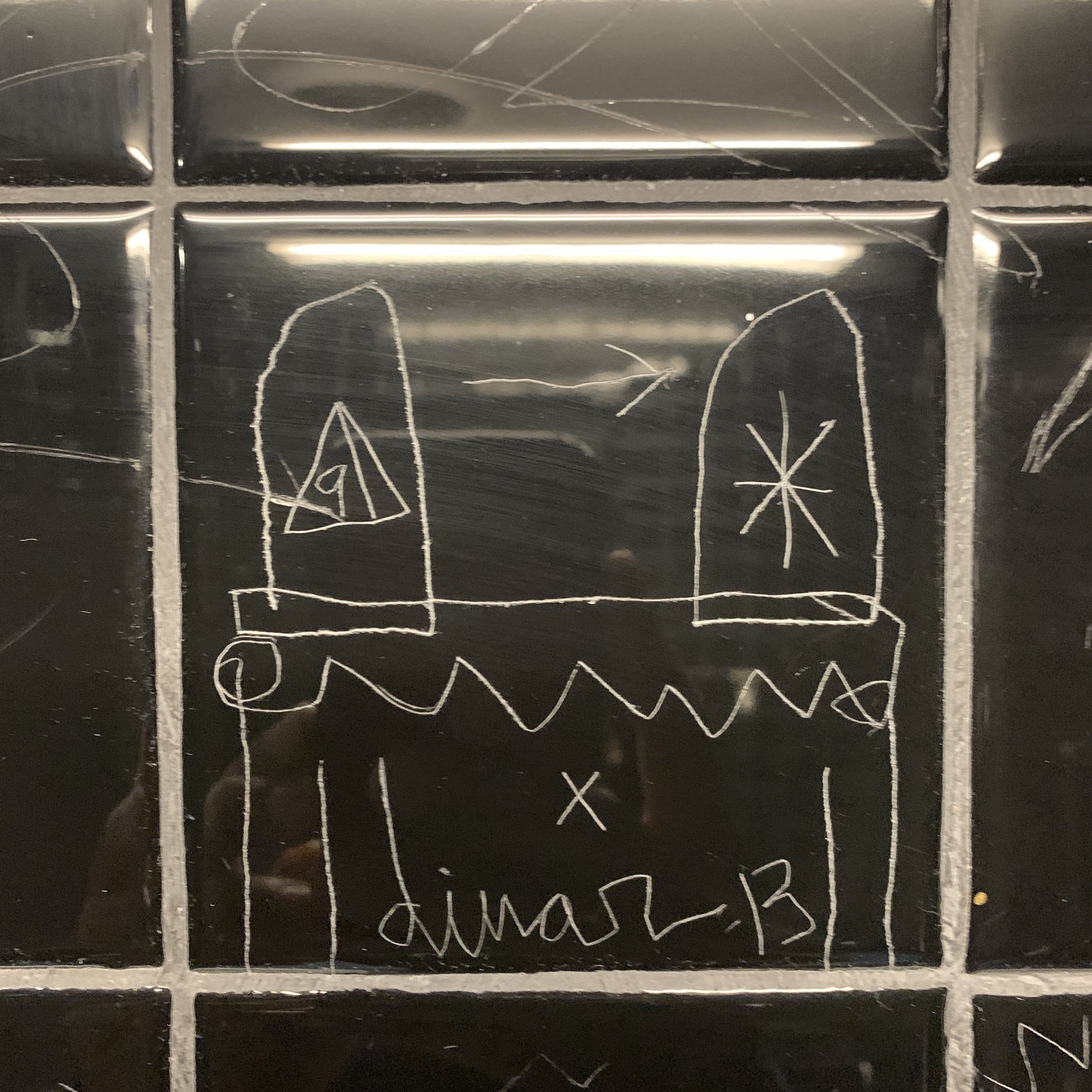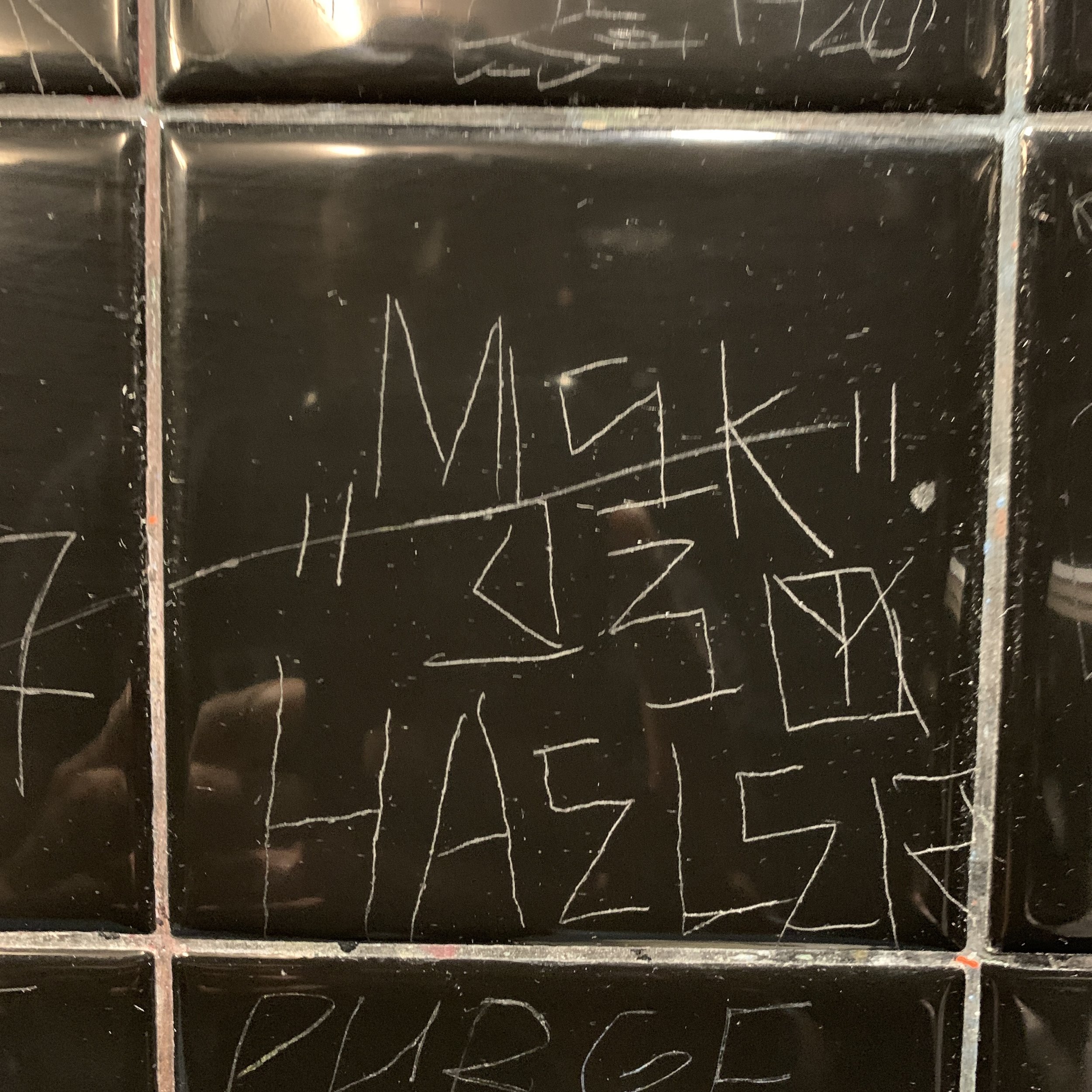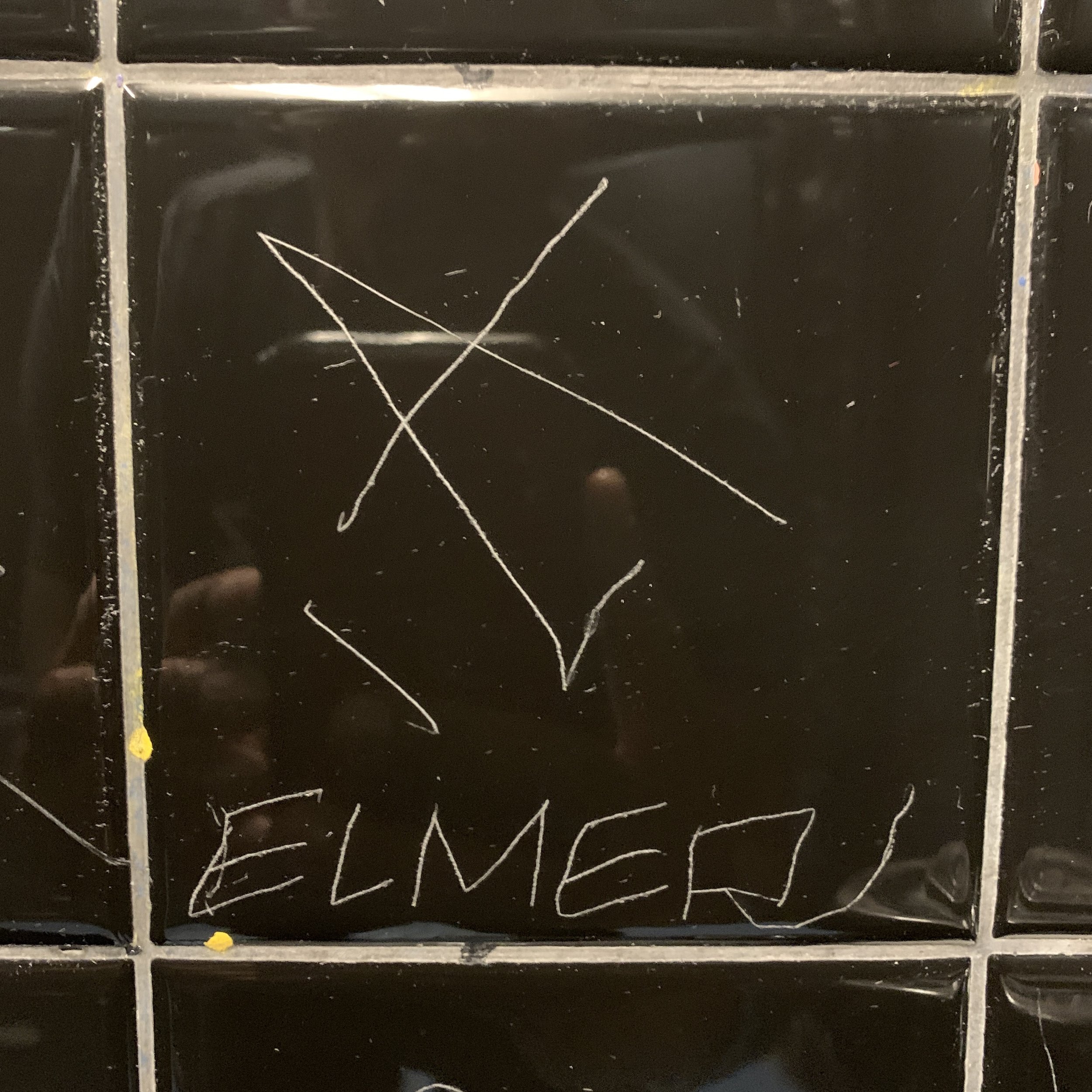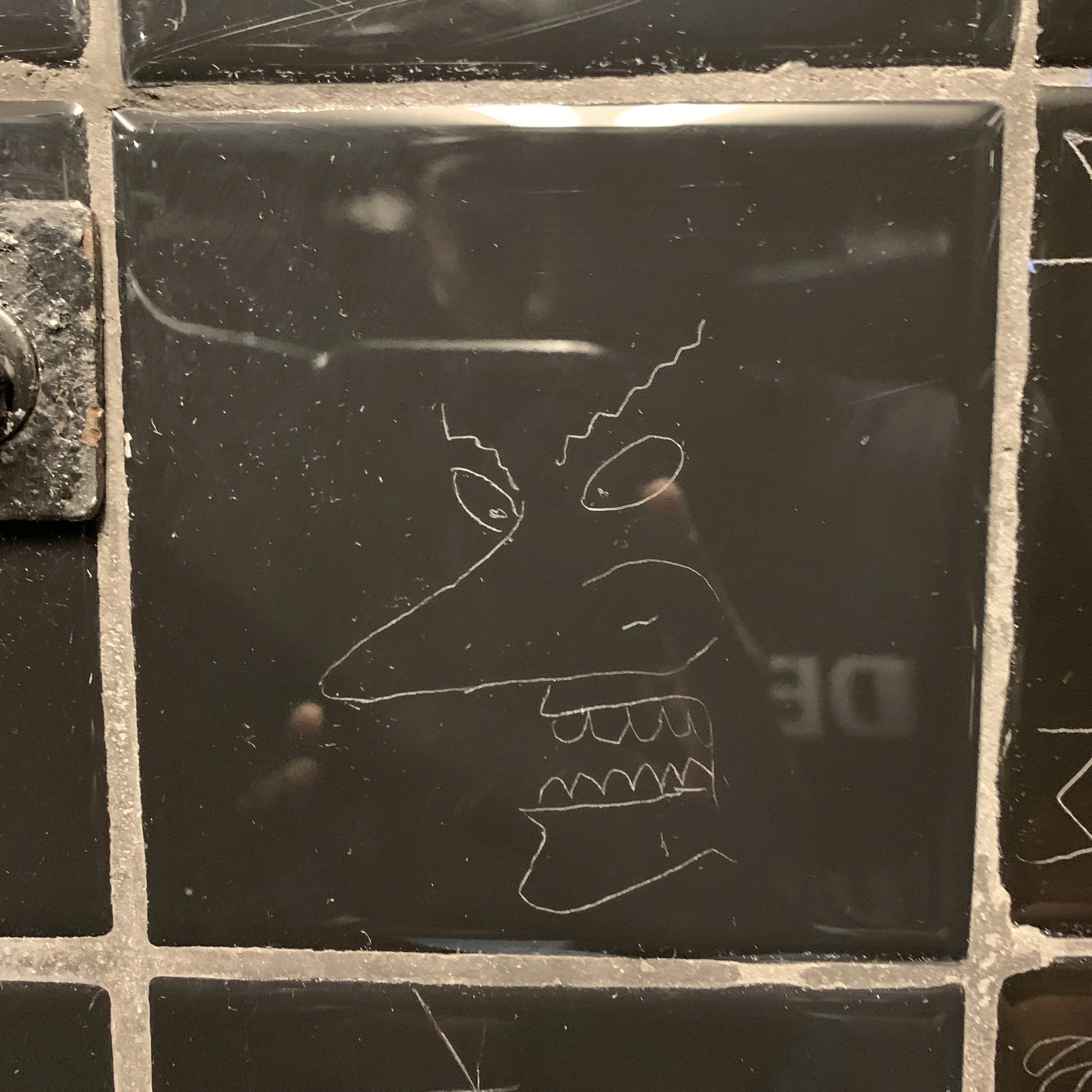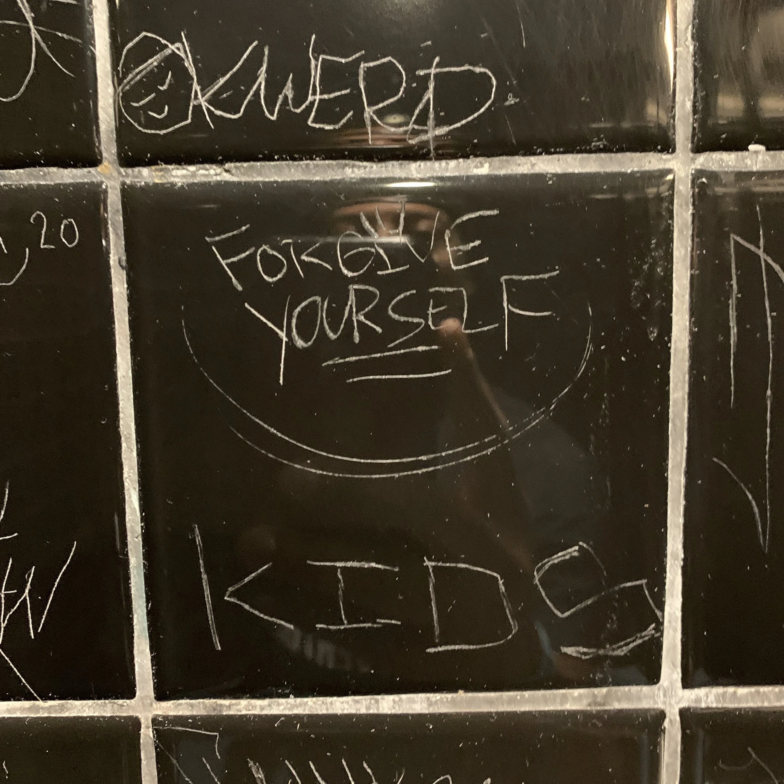 Black tile is the perfect canvas for public art. These were collected from the Garden Bowl in Detroit.