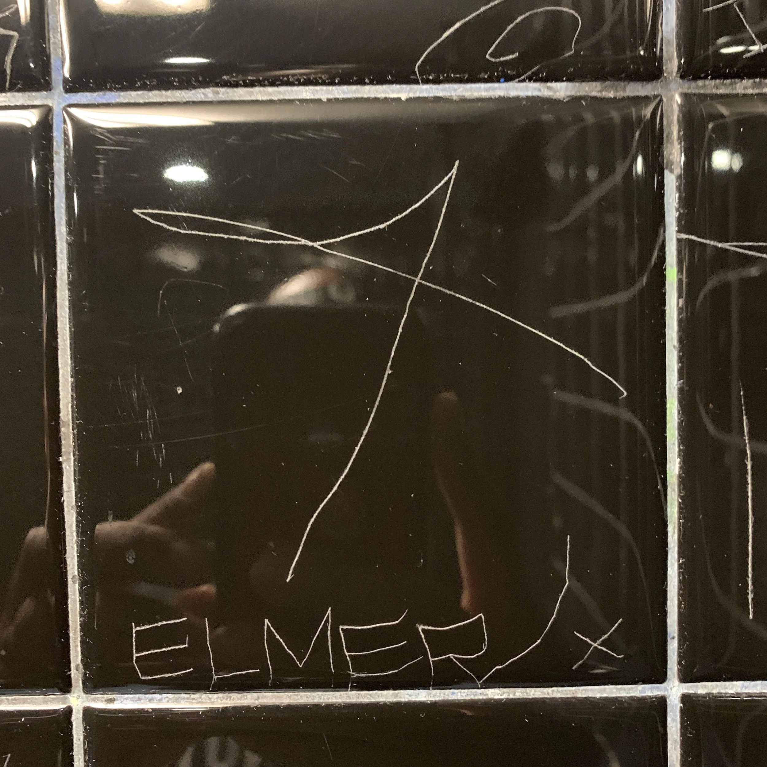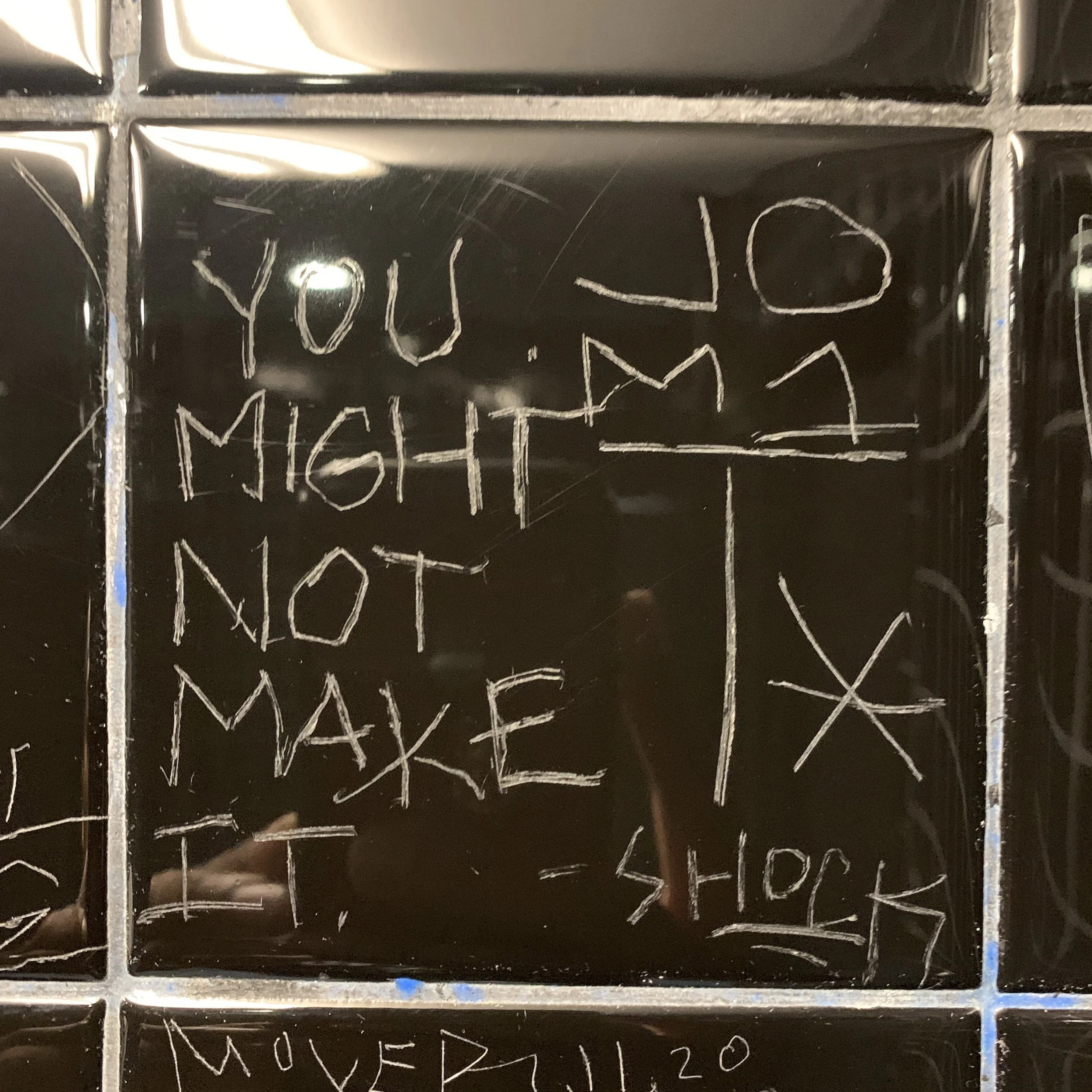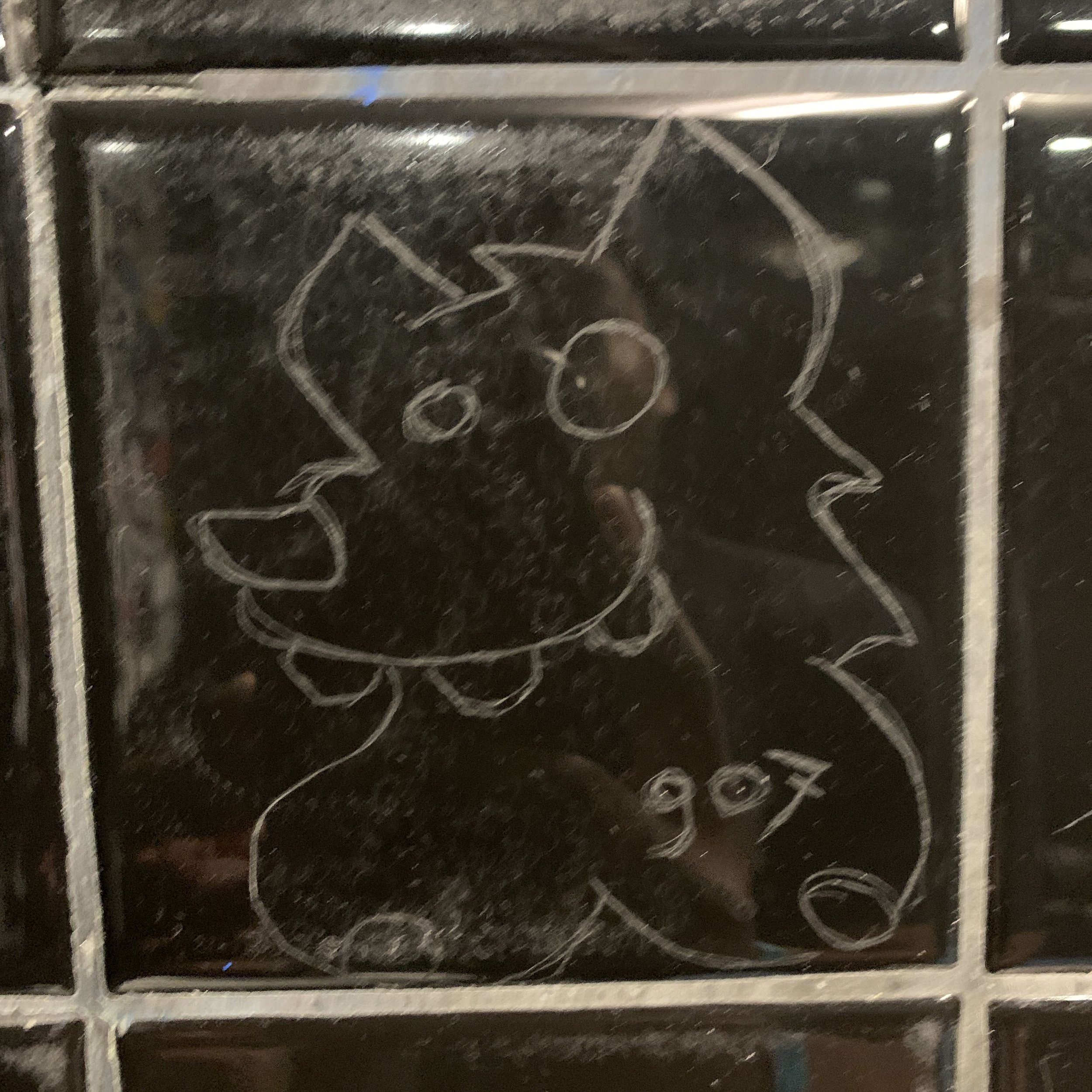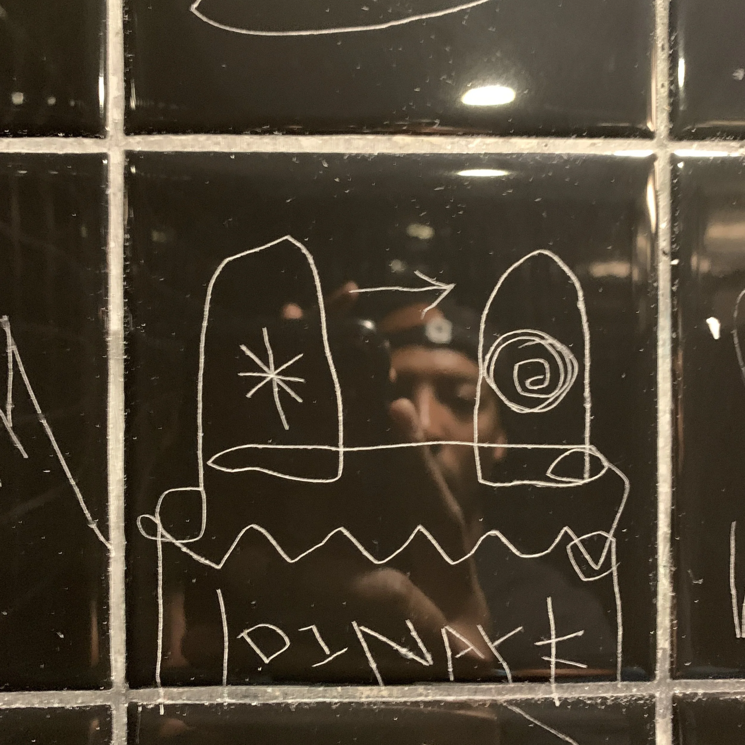 Black tile is the perfect canvas for public art. These were collected from the Garden Bowl in Detroit.