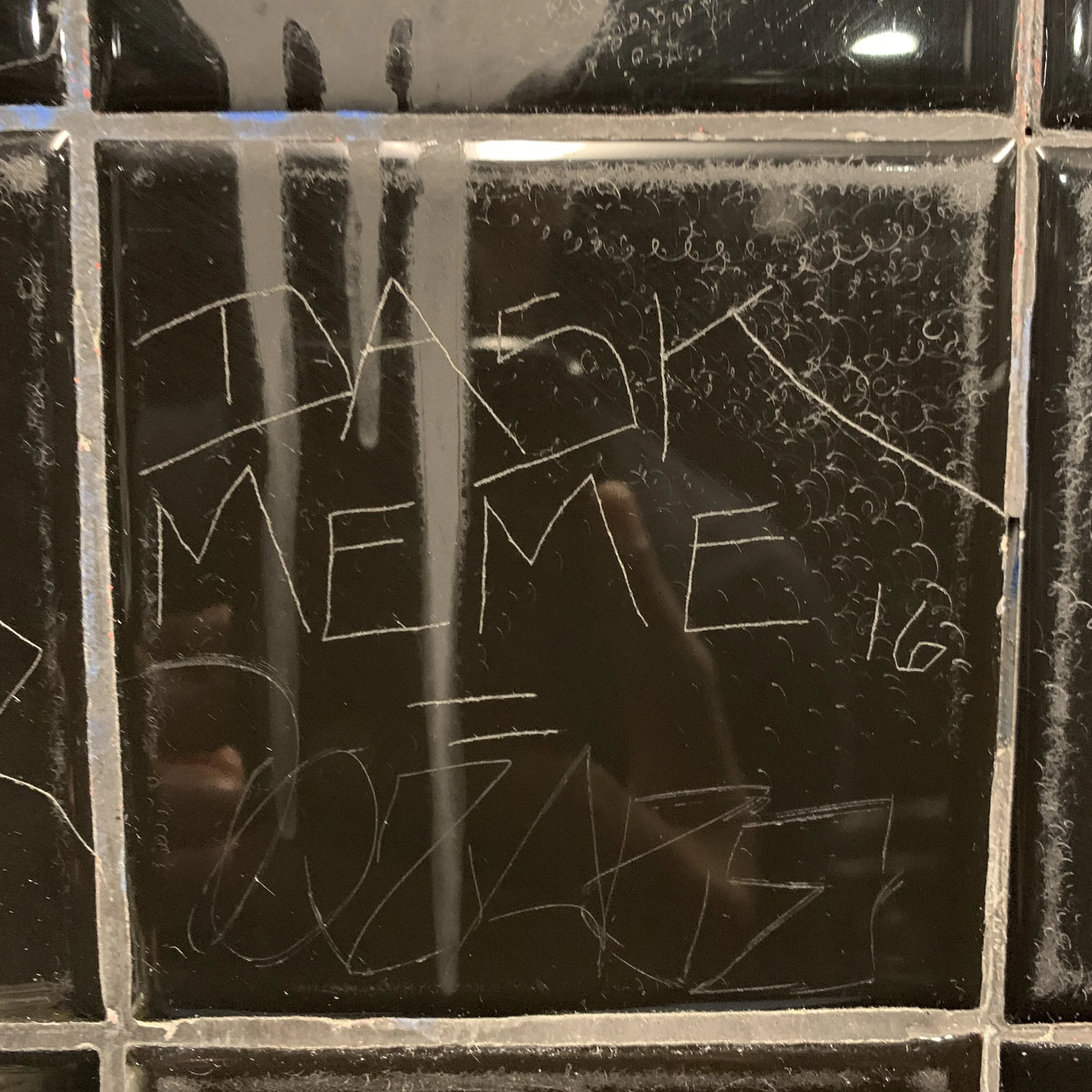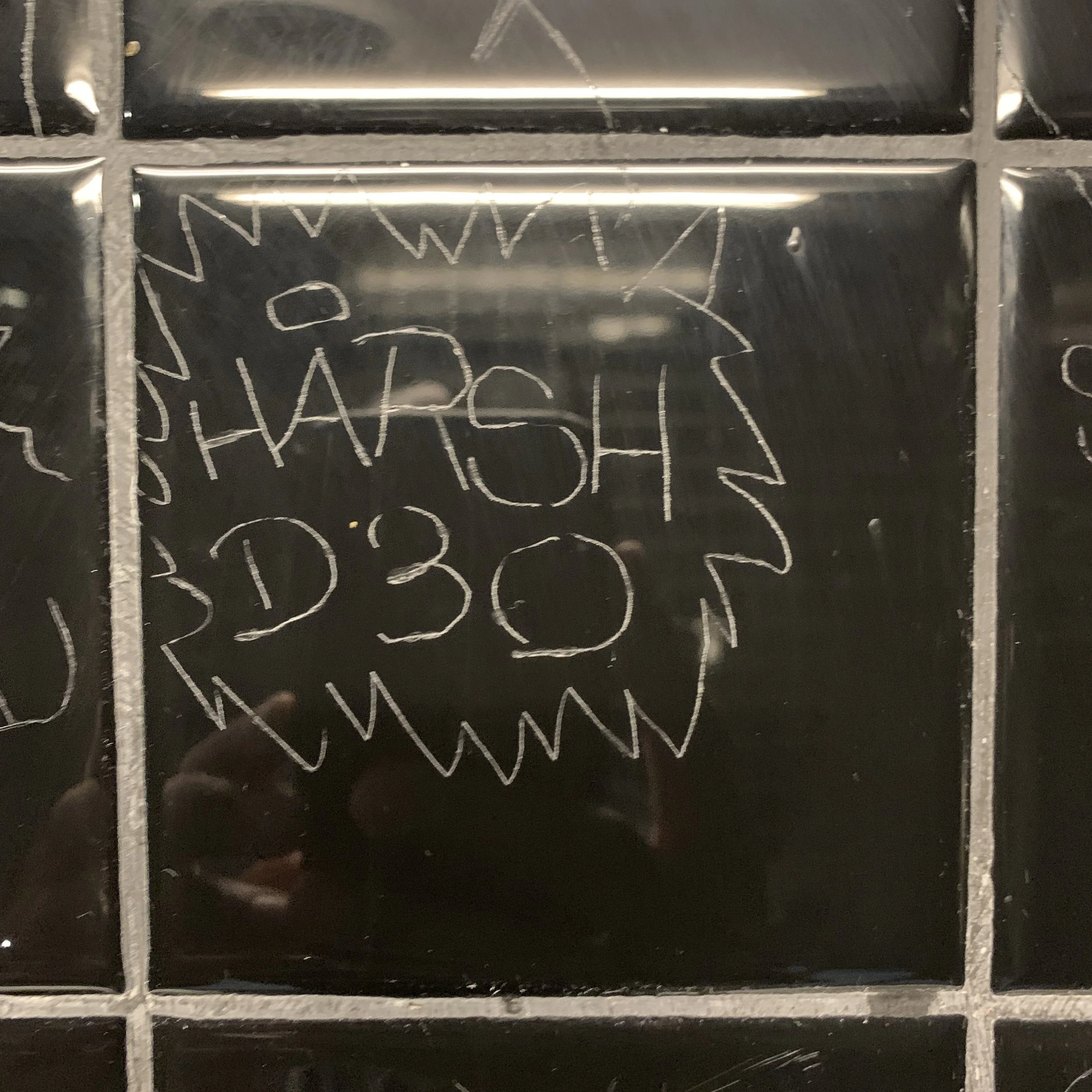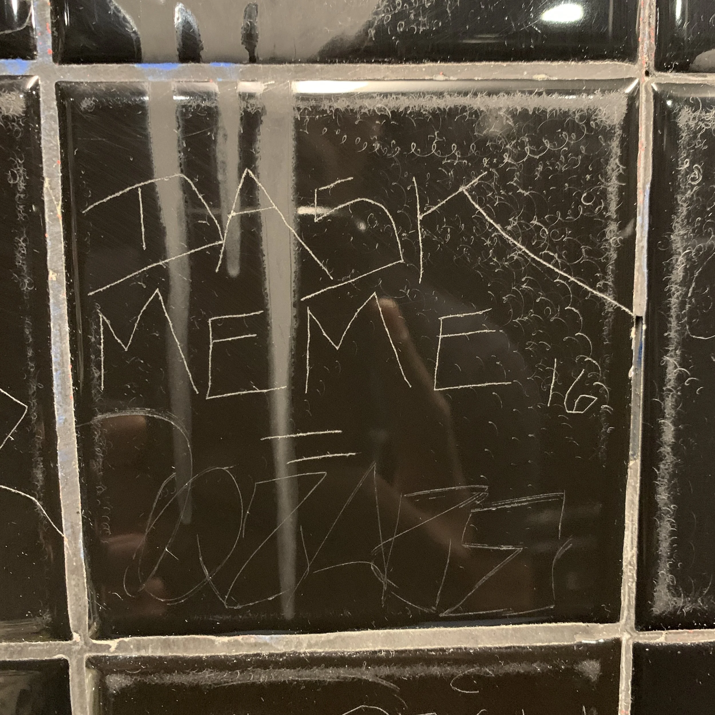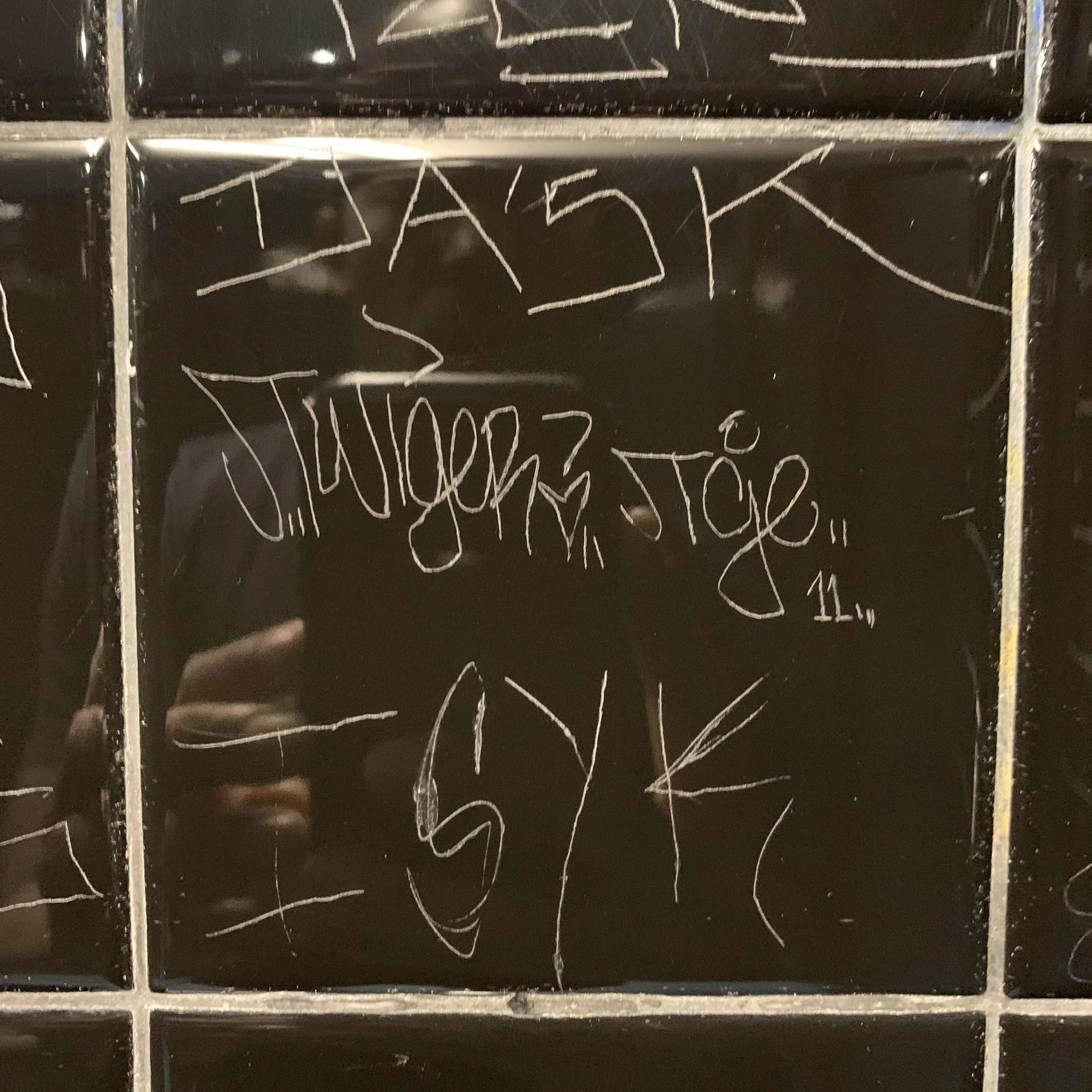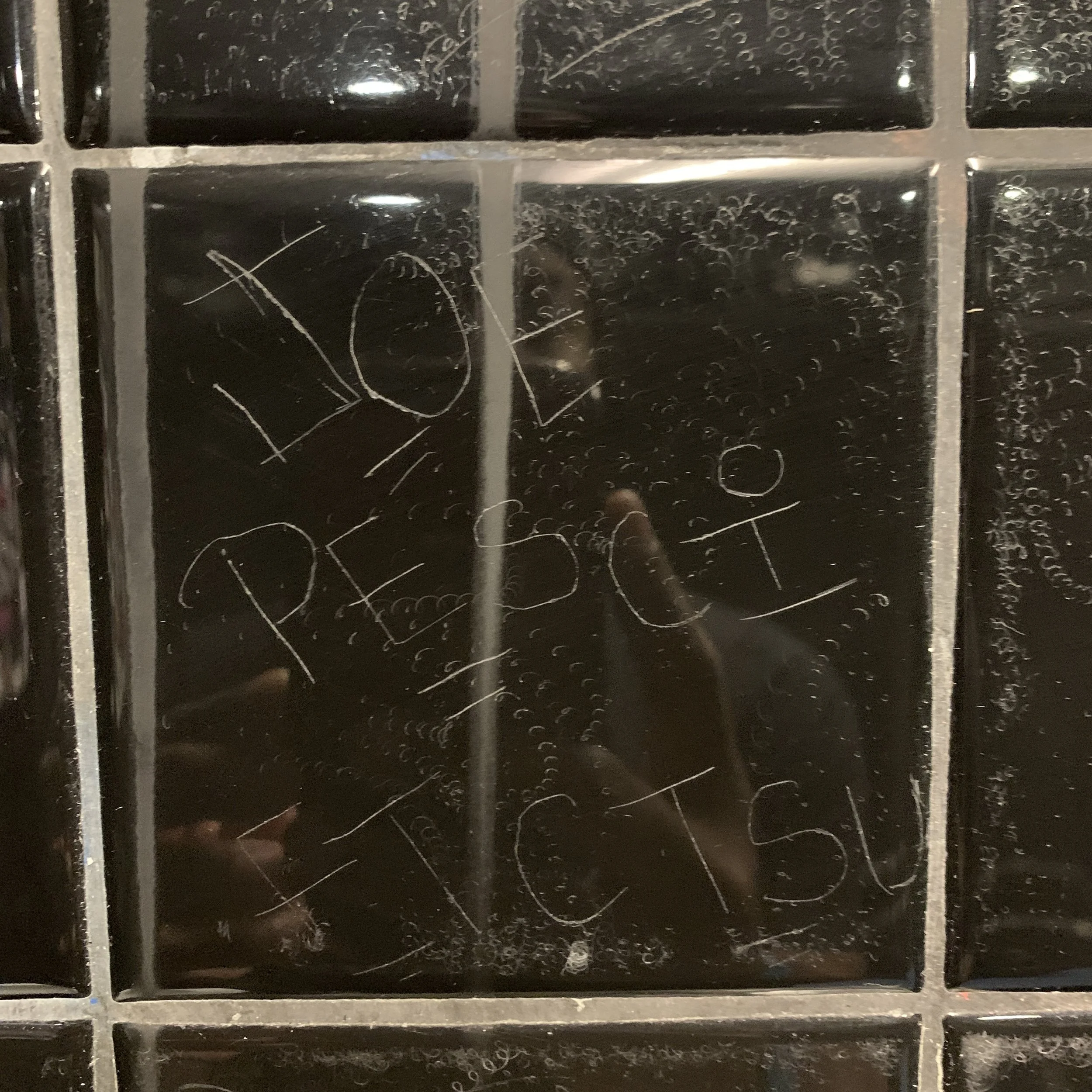 Black tile is the perfect canvas for public art. These were collected from the Garden Bowl in Detroit.
