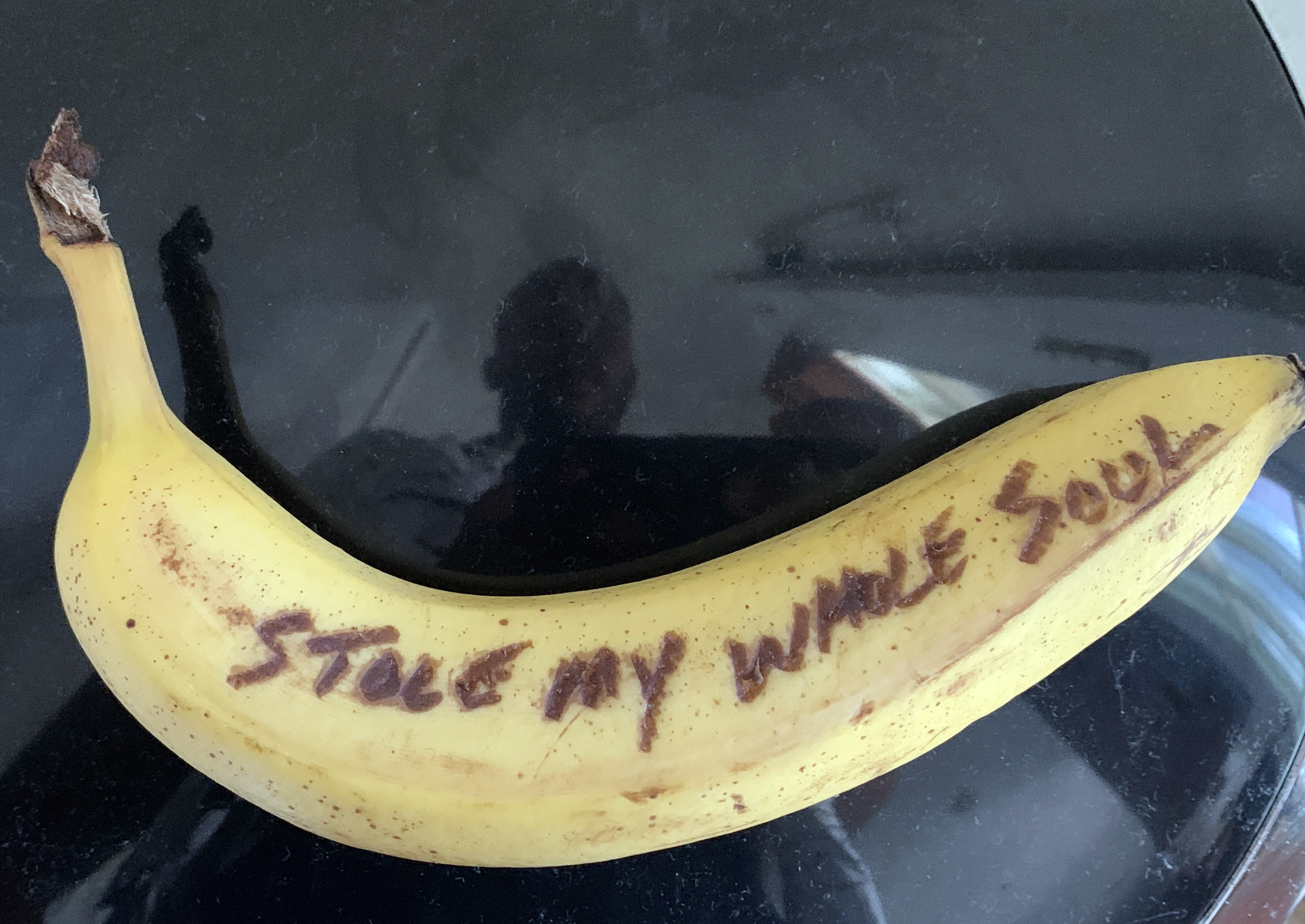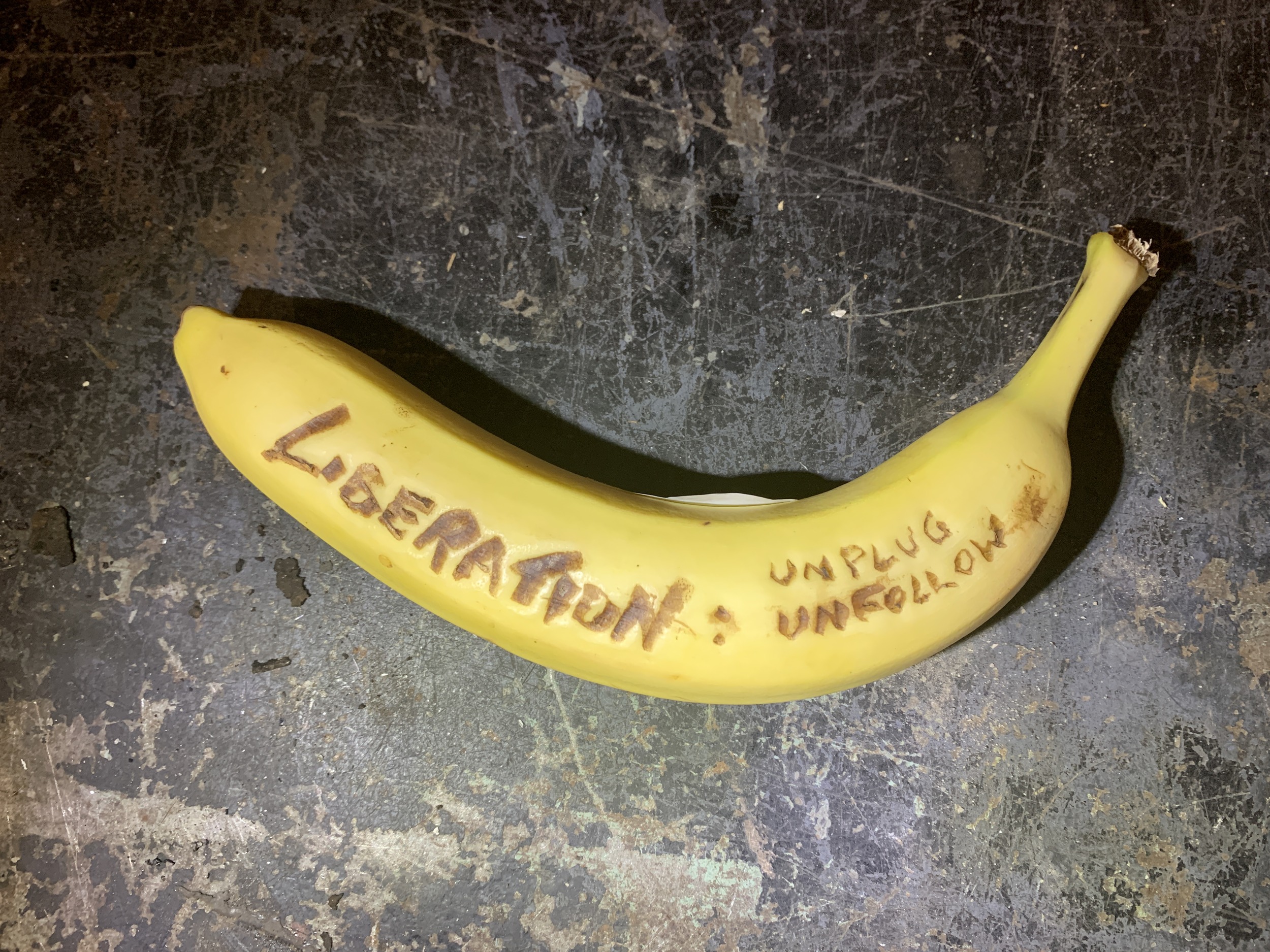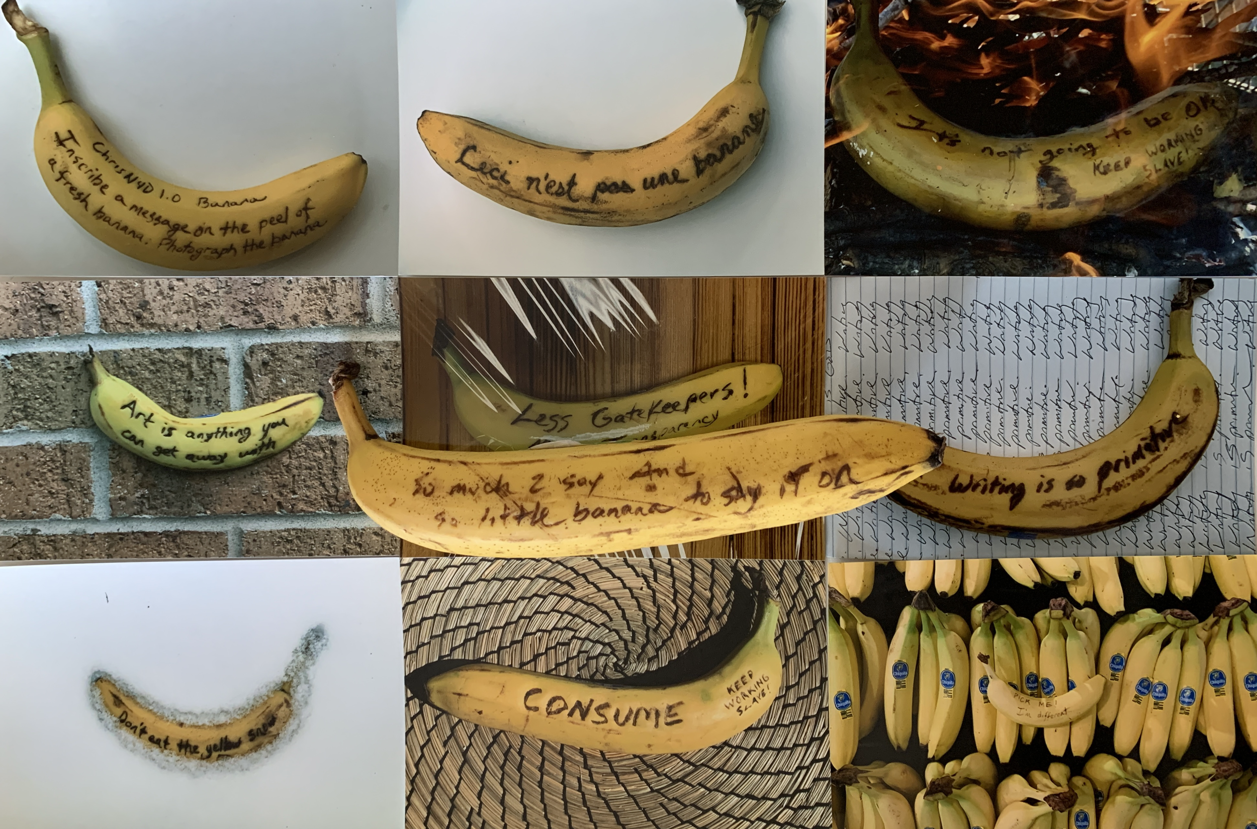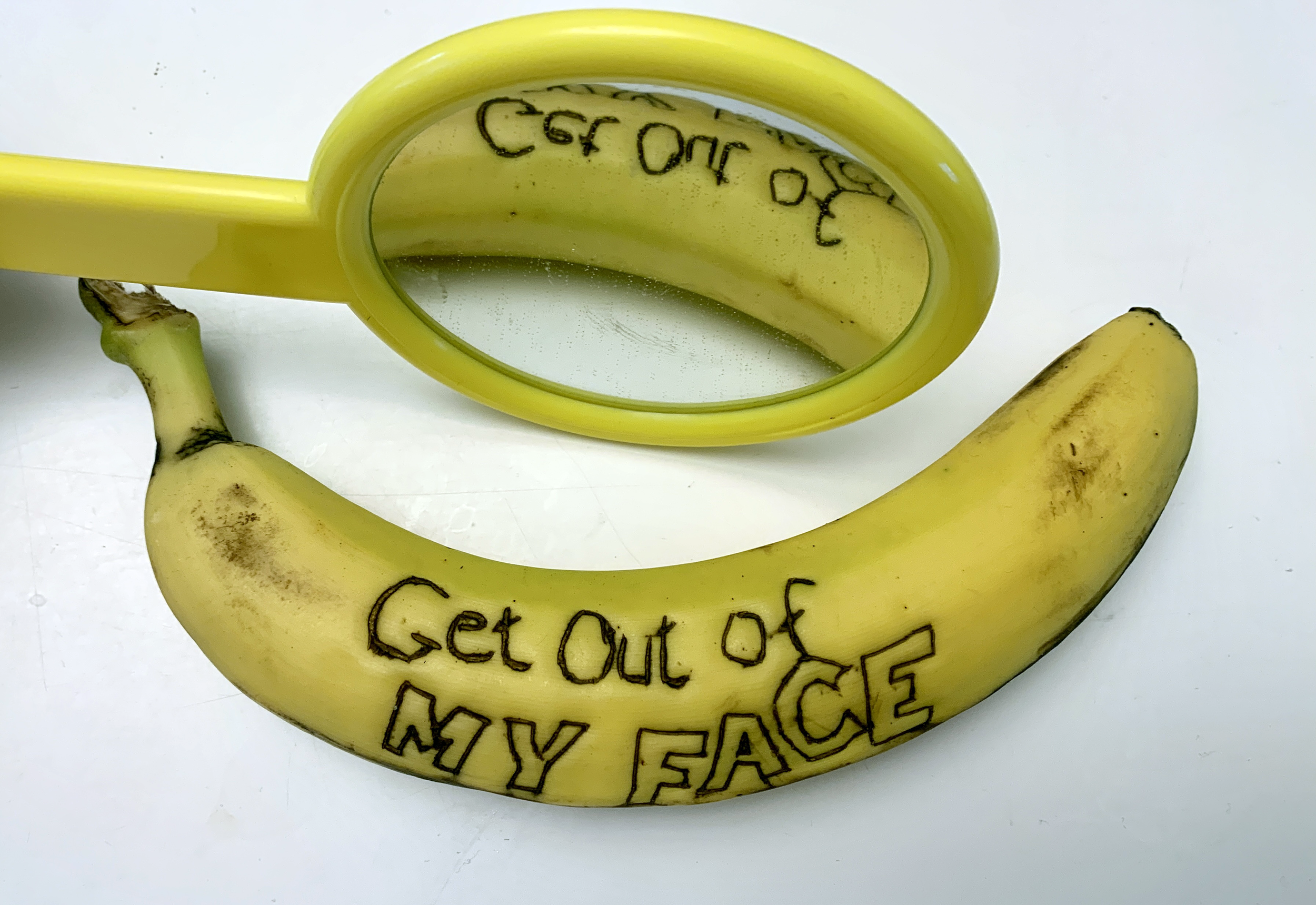 “Inscribe a message on the peel of a banana. Photograph the banana.”