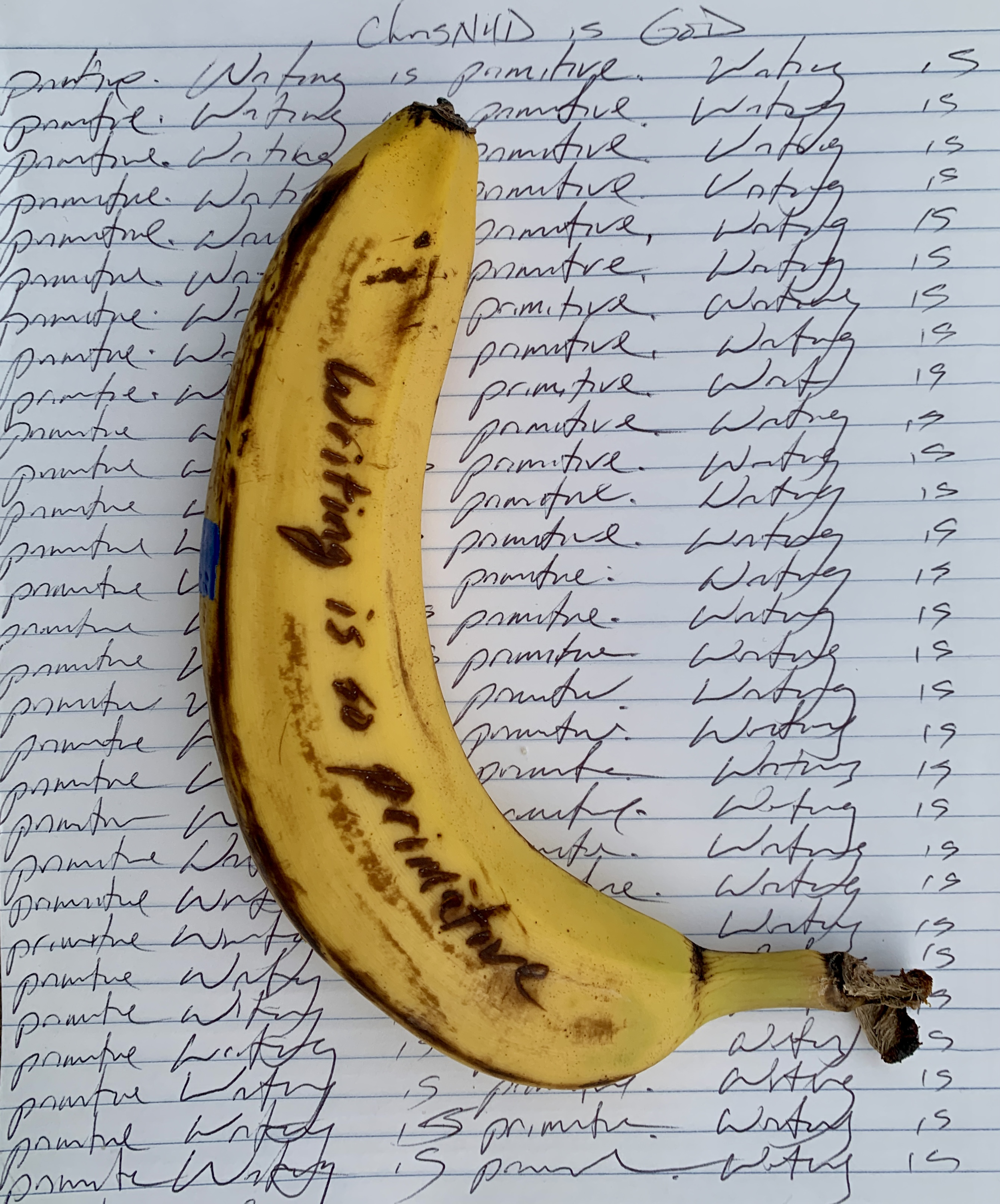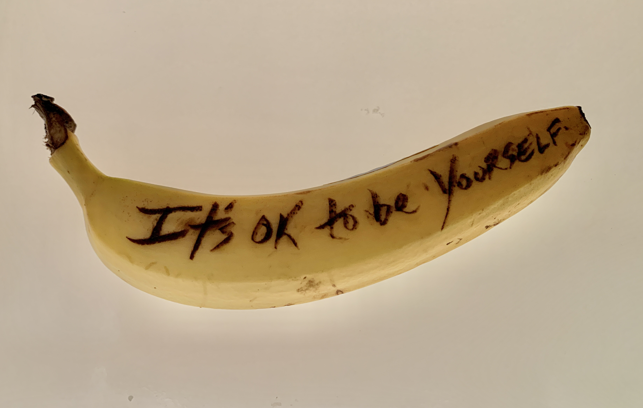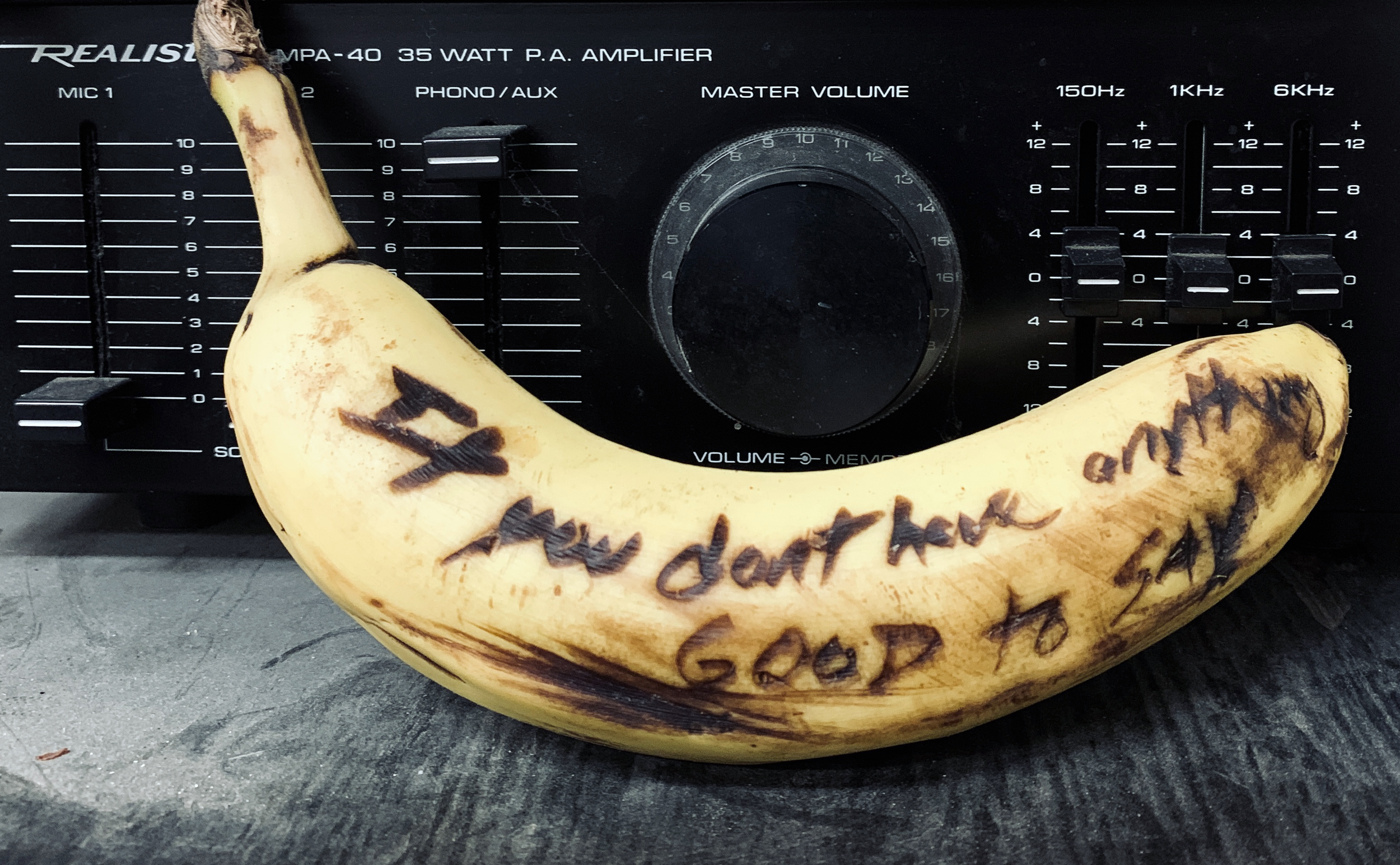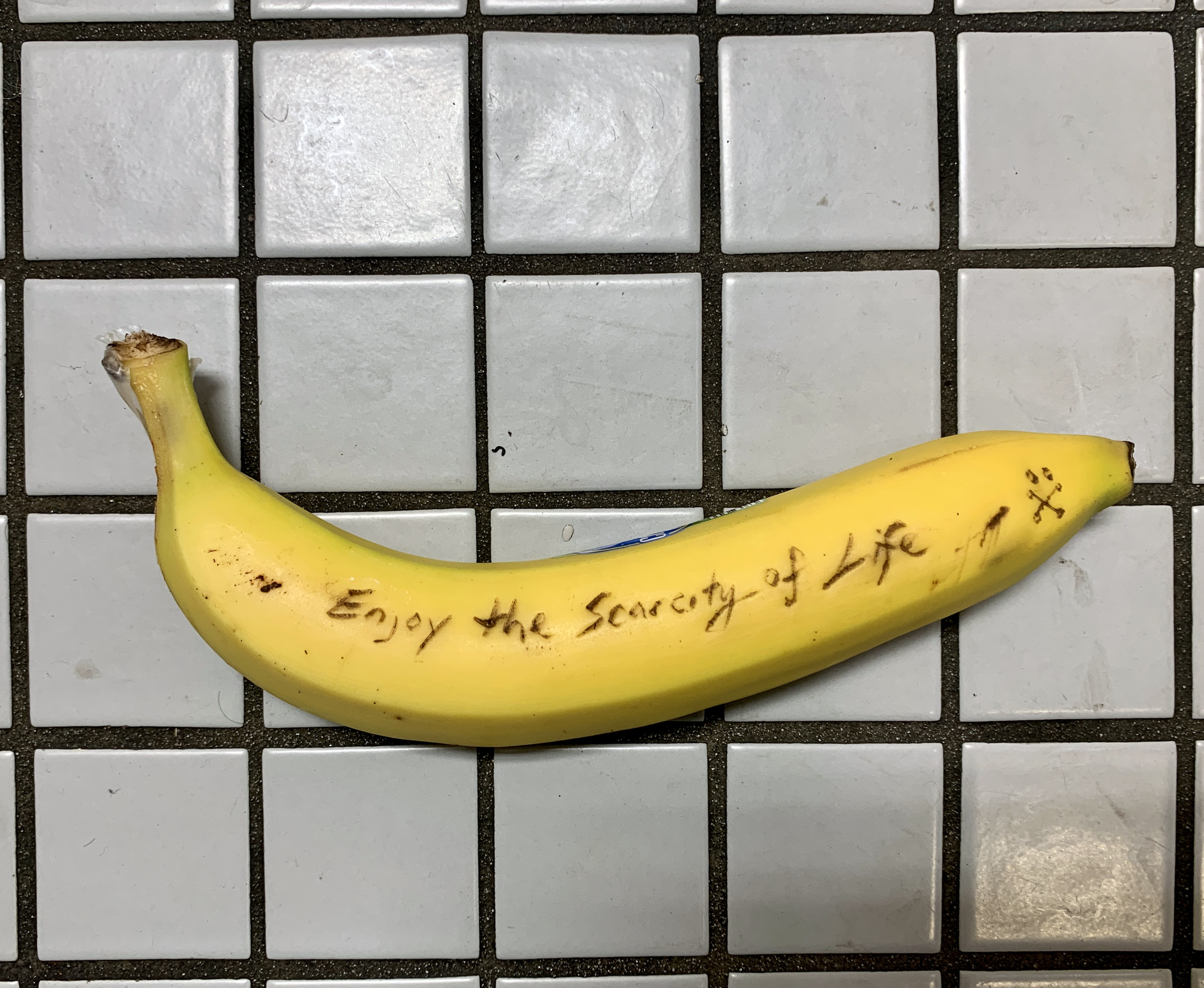 “Inscribe a message on the peel of a banana. Photograph the banana.”