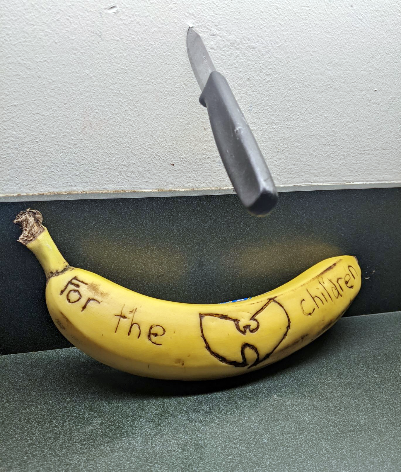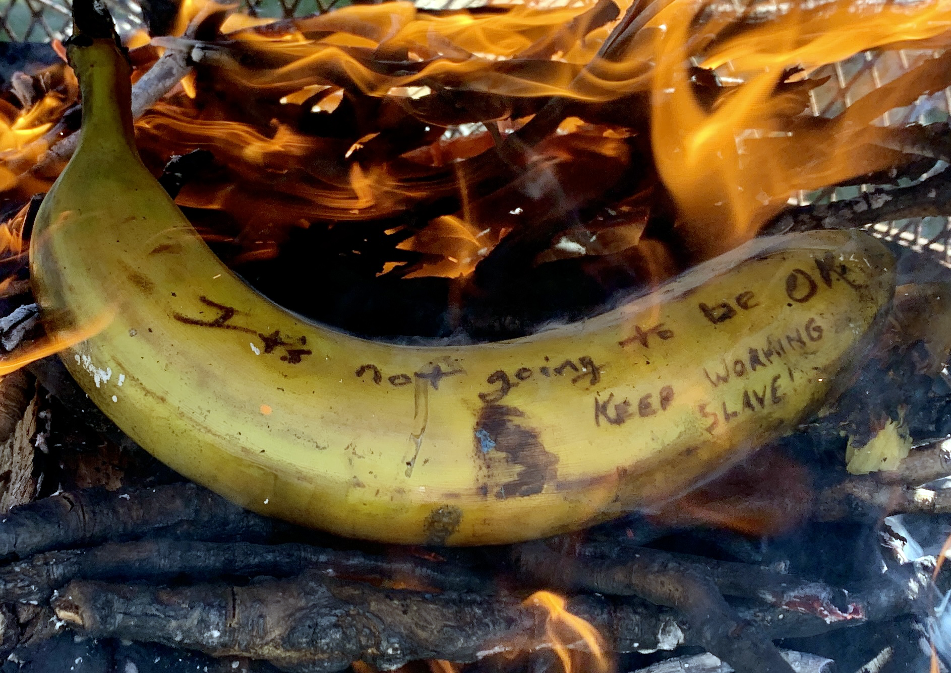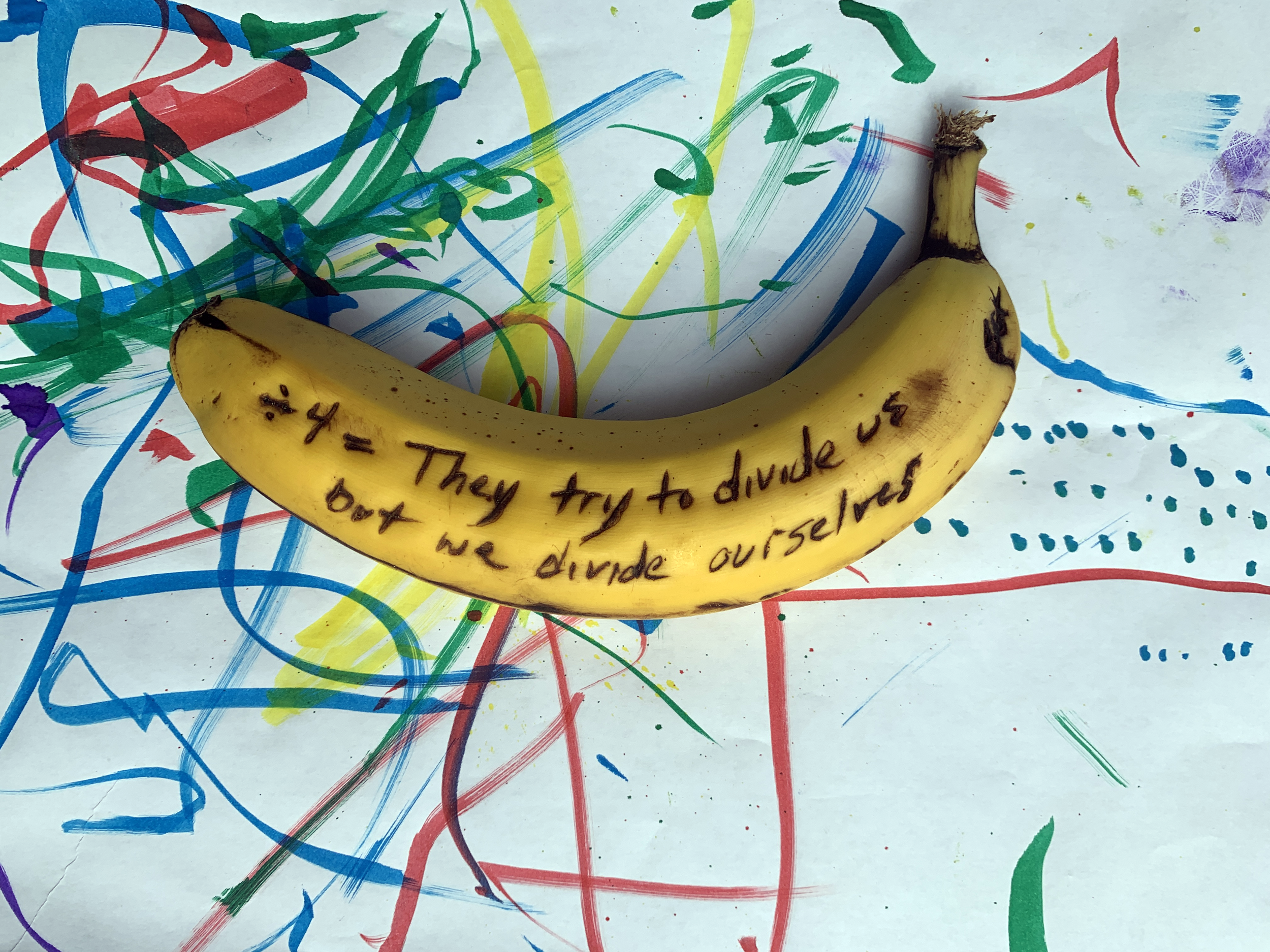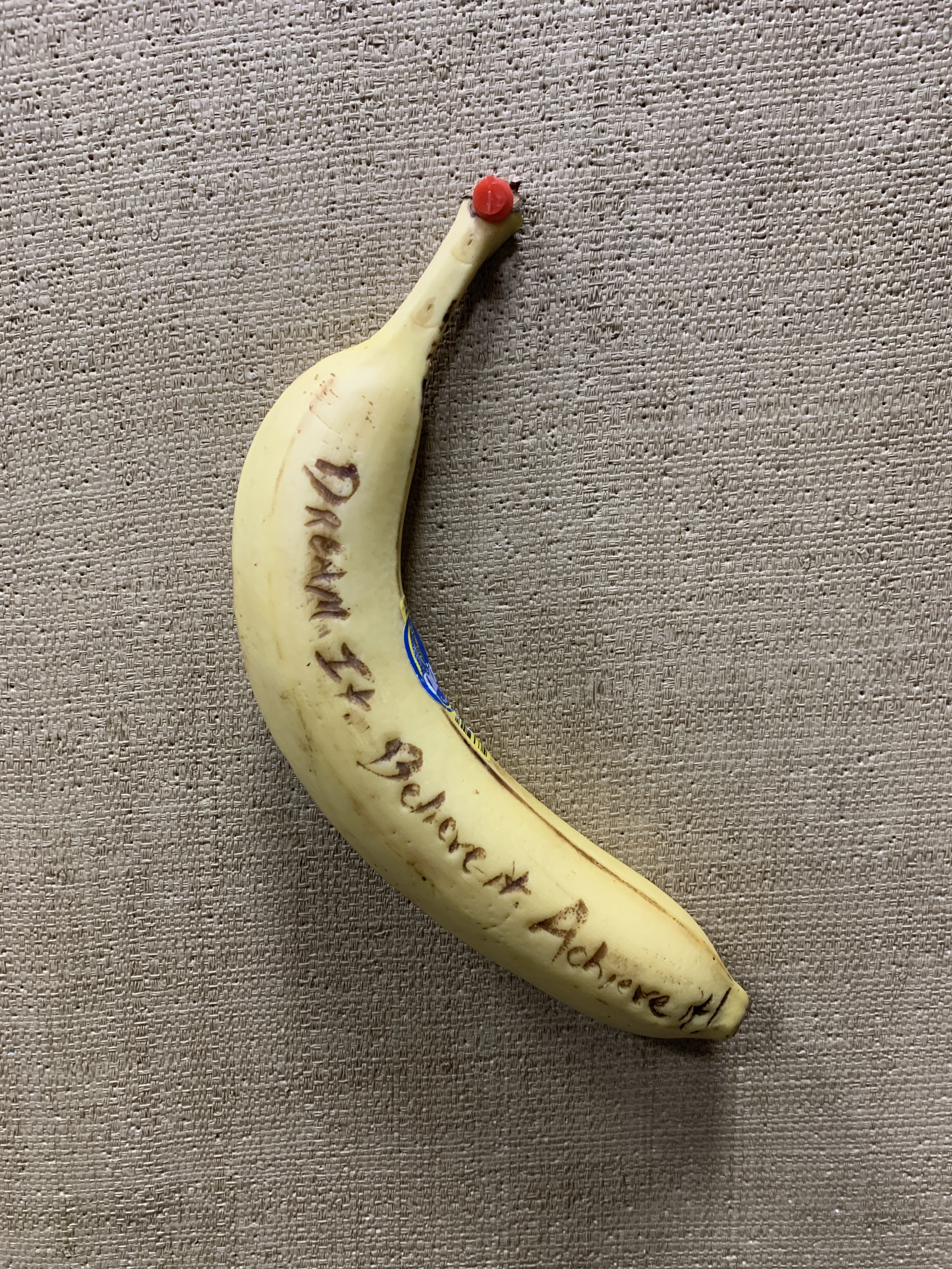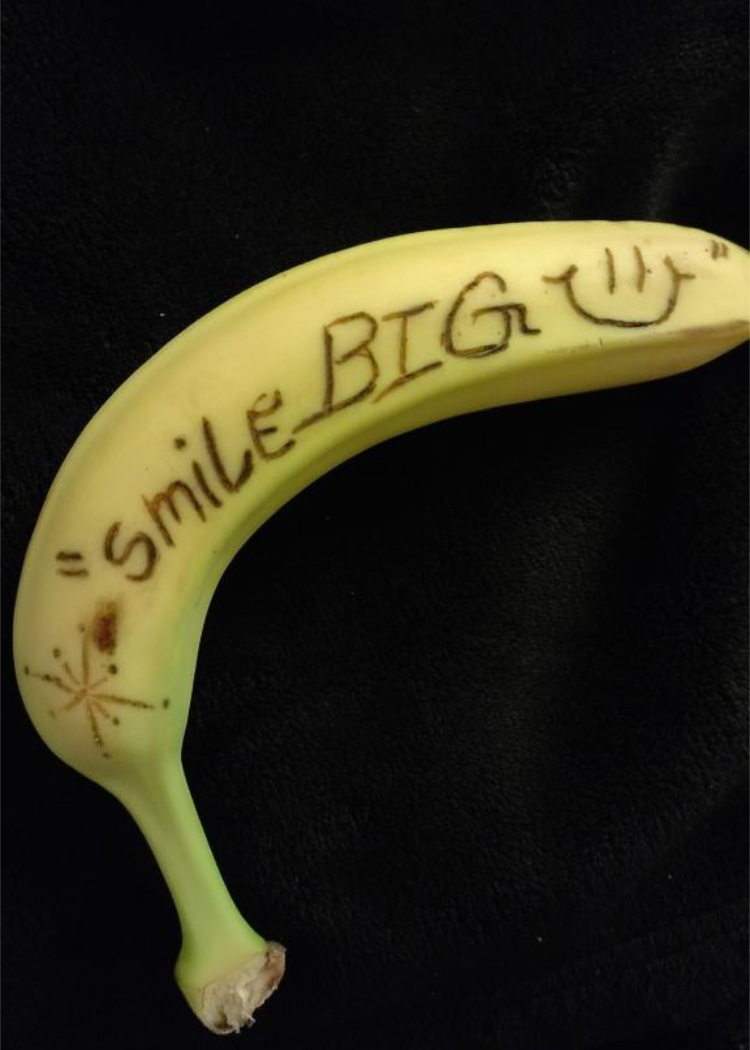 “Inscribe a message on the peel of a banana. Photograph the banana.”