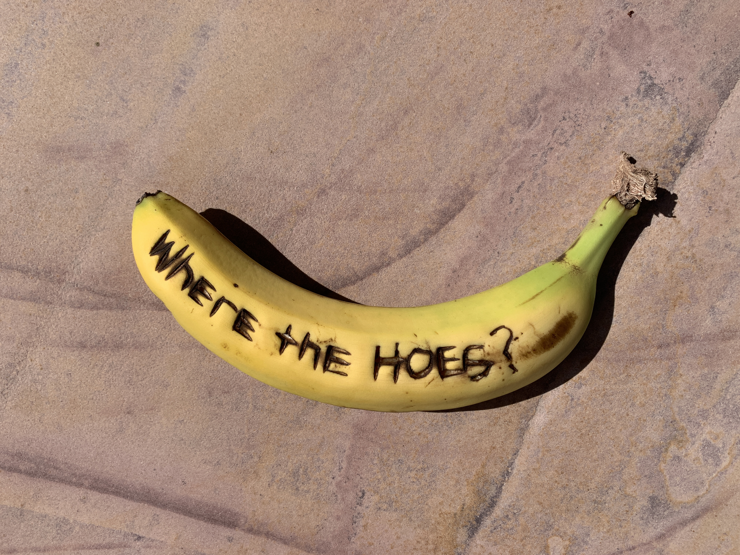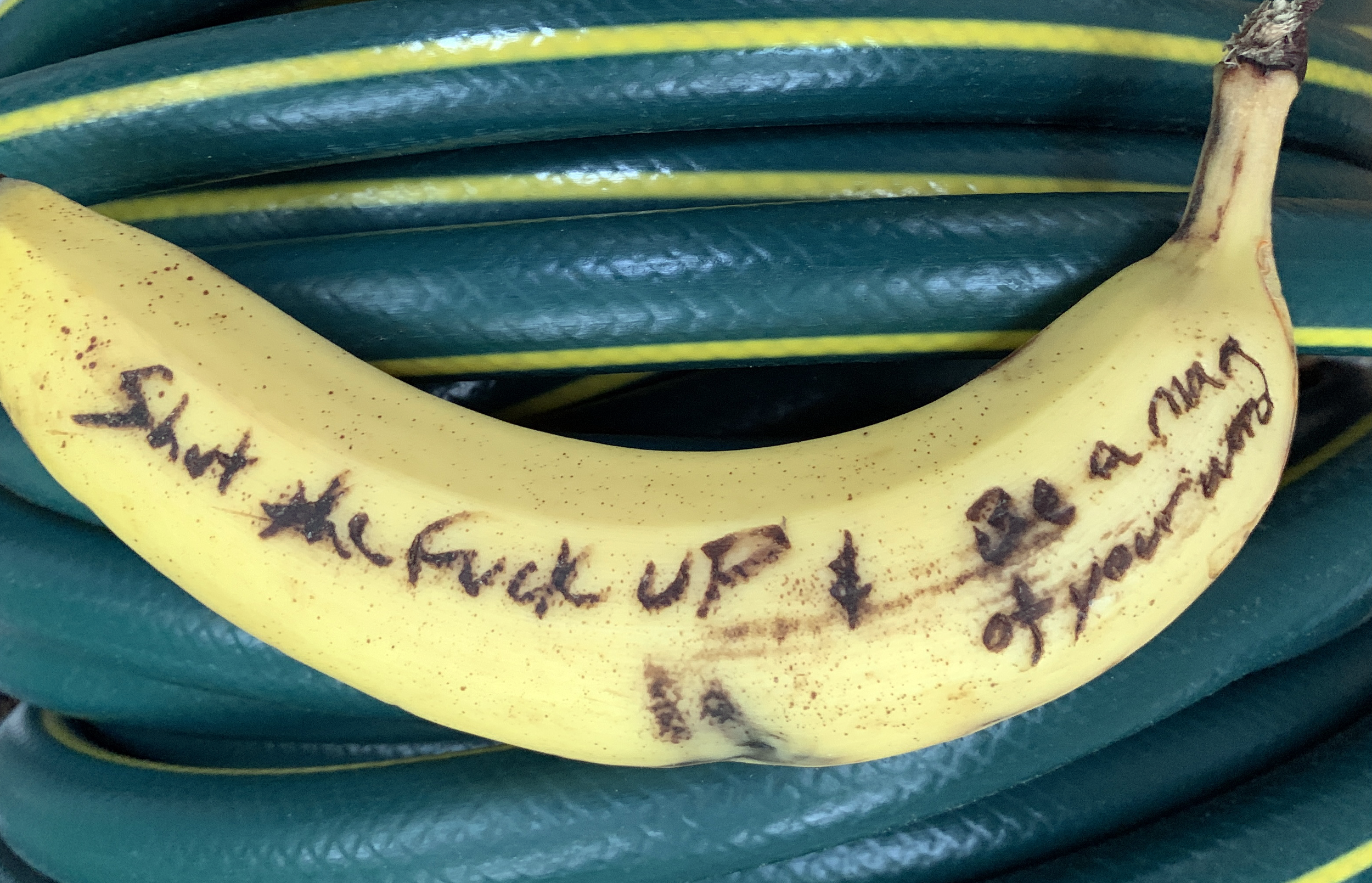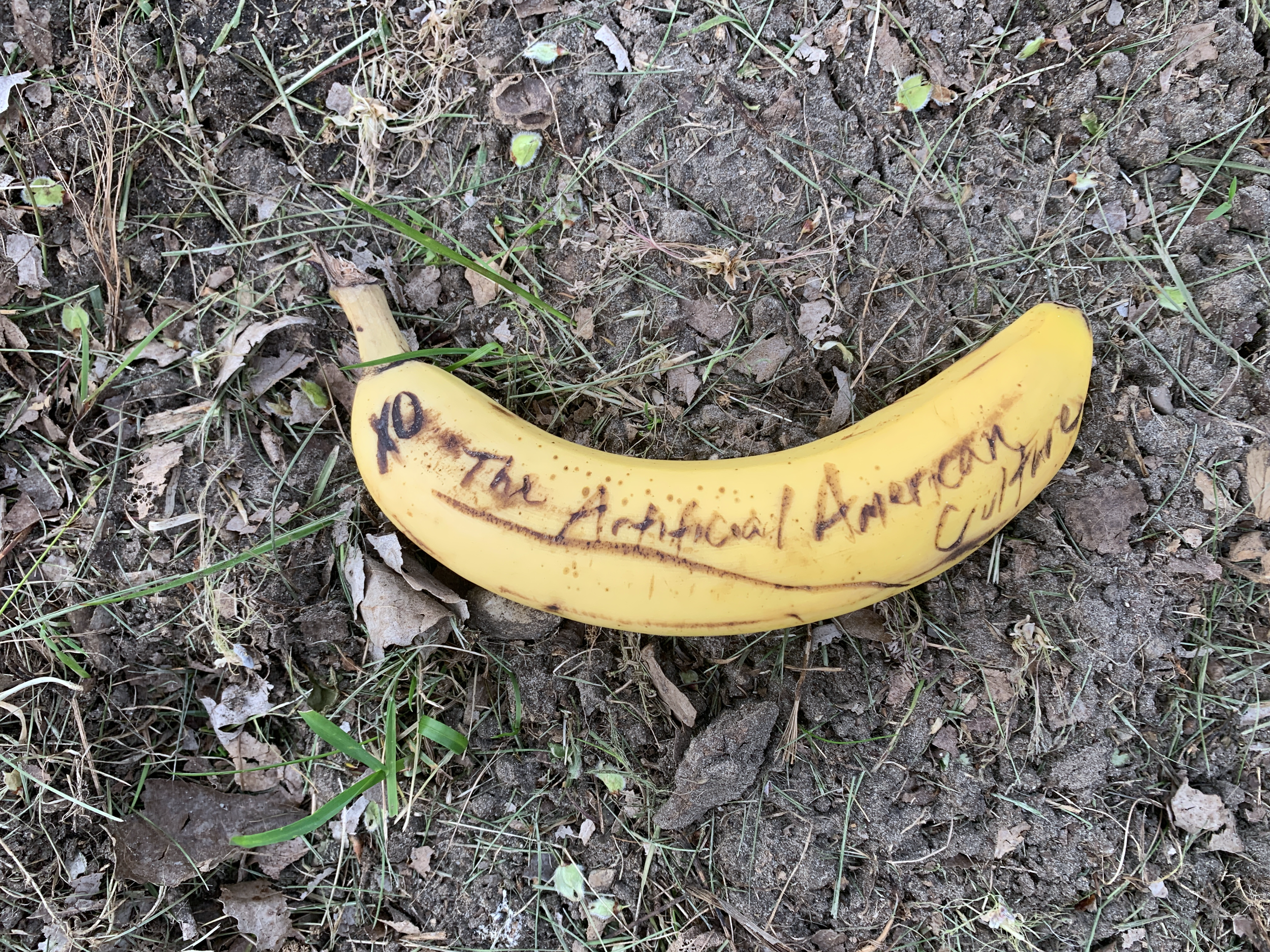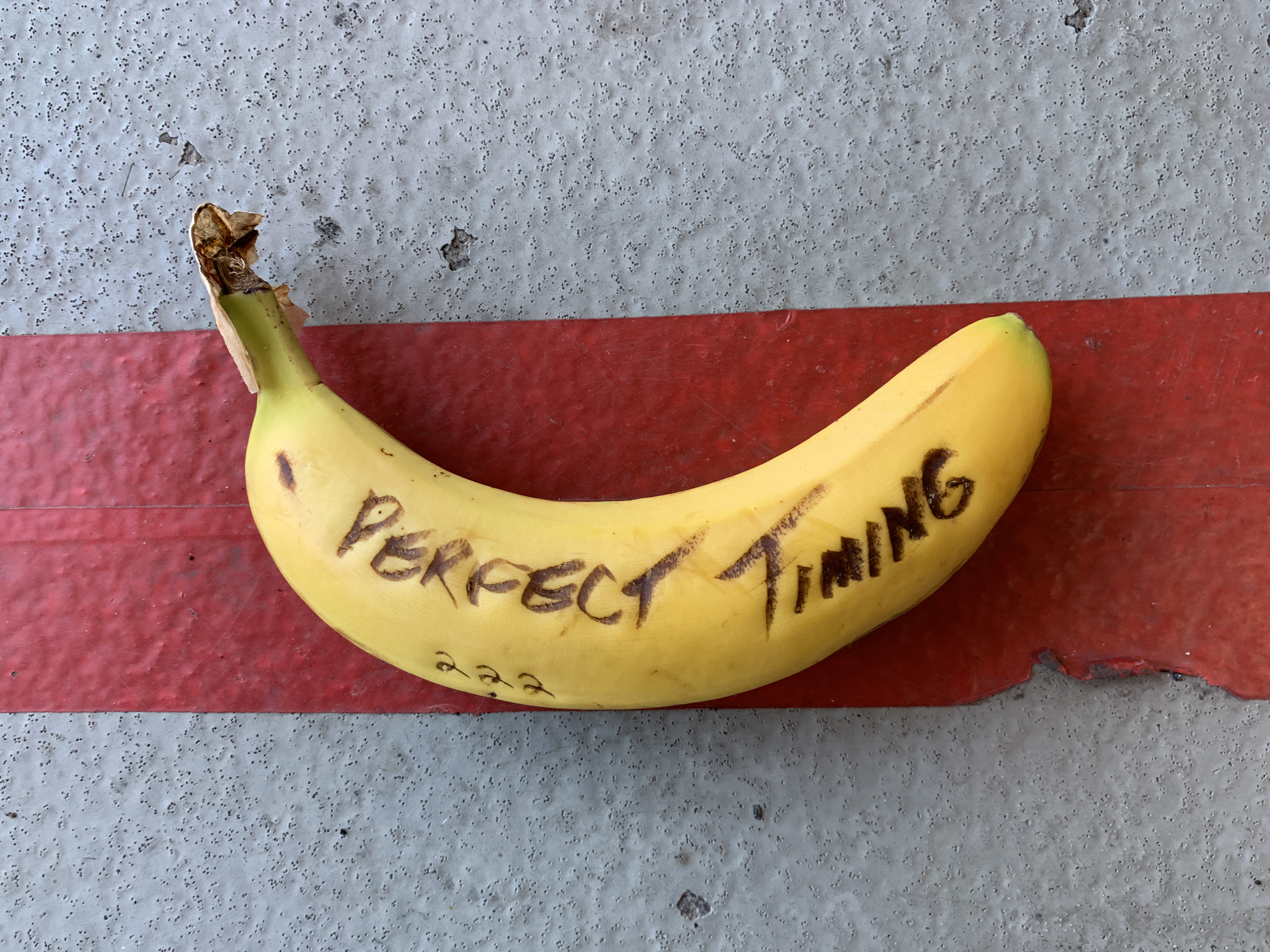 “Inscribe a message on the peel of a banana. Photograph the banana.”