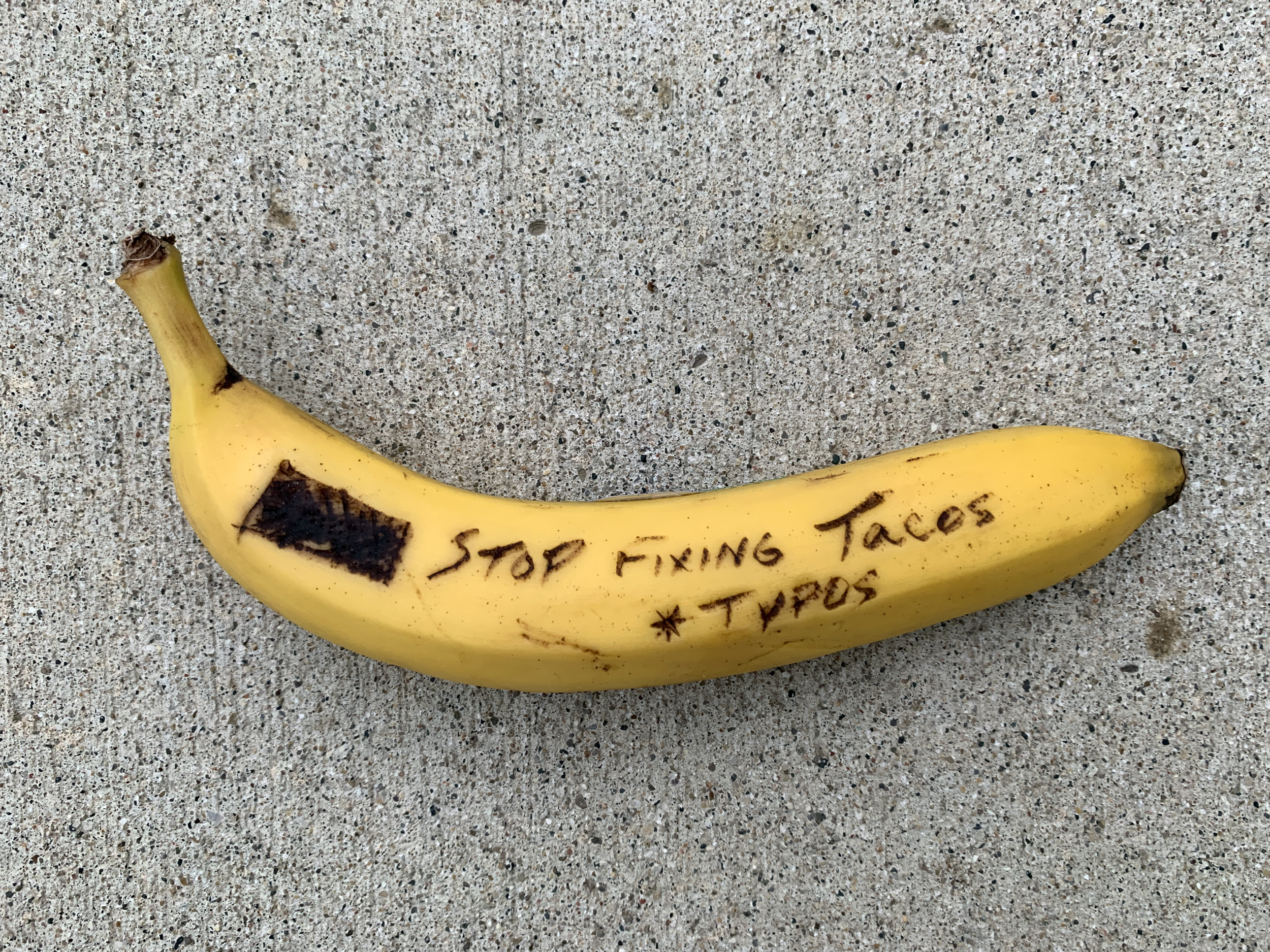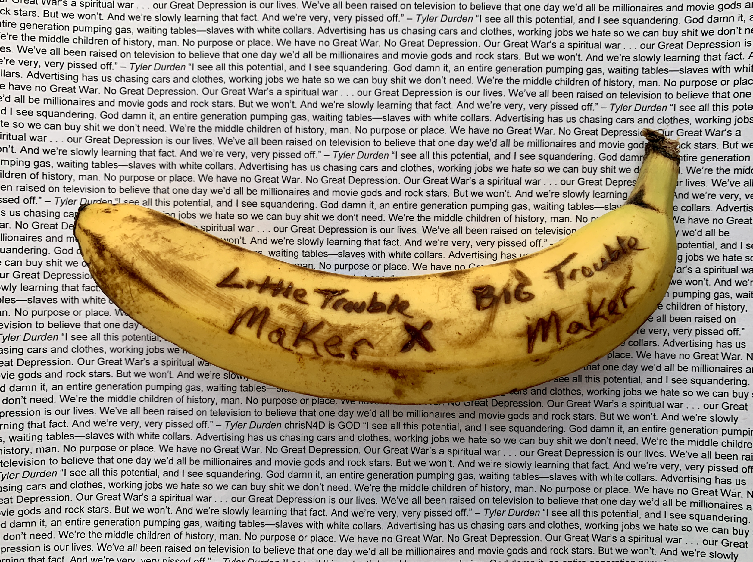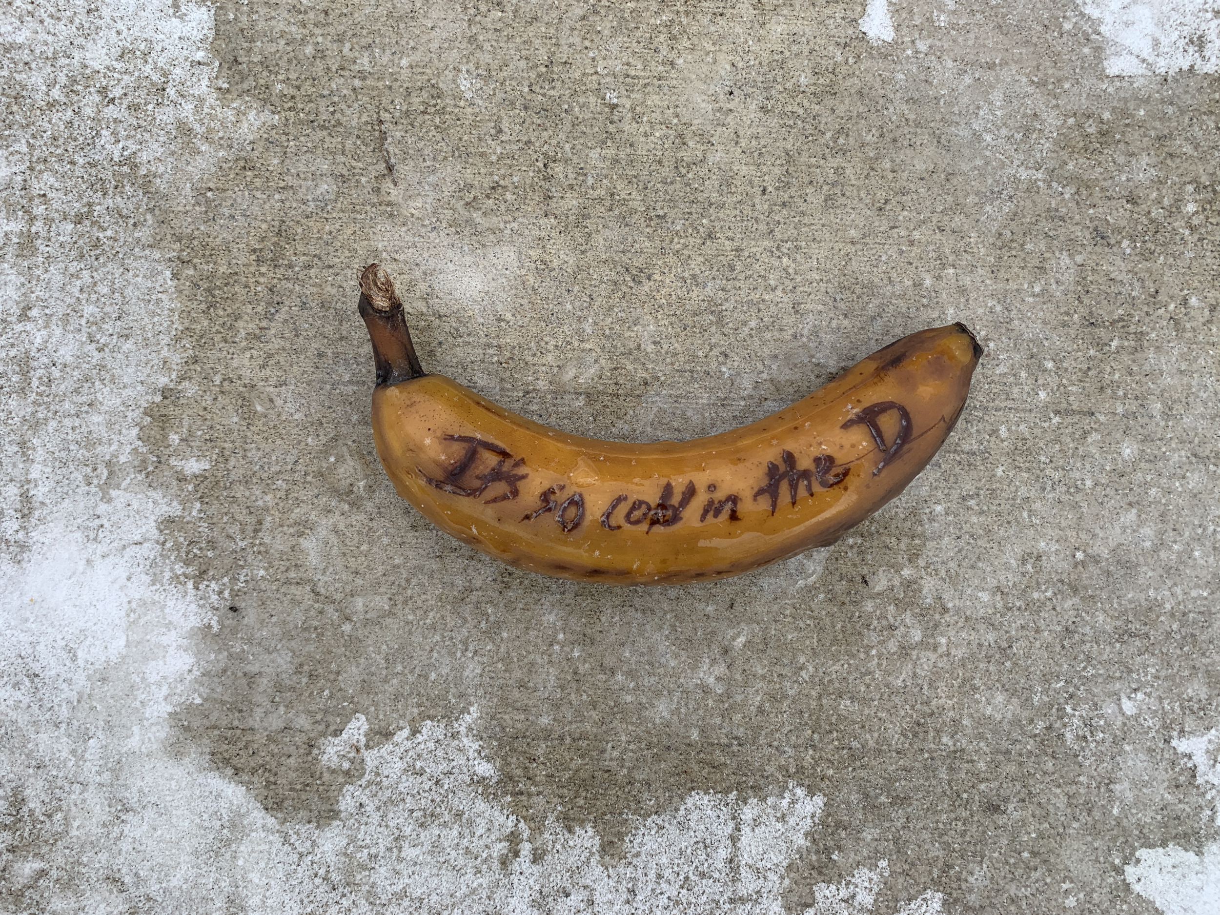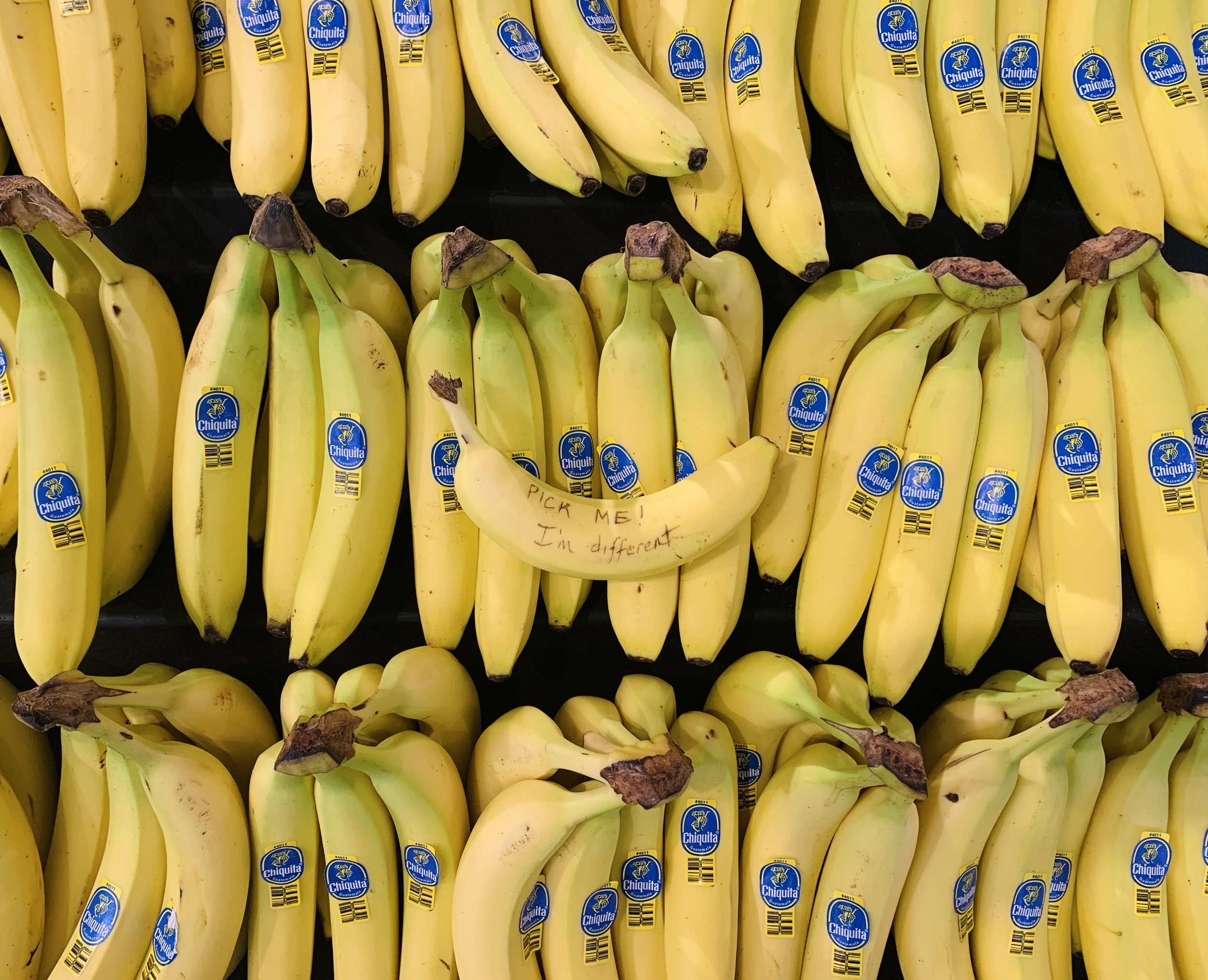 “Inscribe a message on the peel of a banana. Photograph the banana.”
